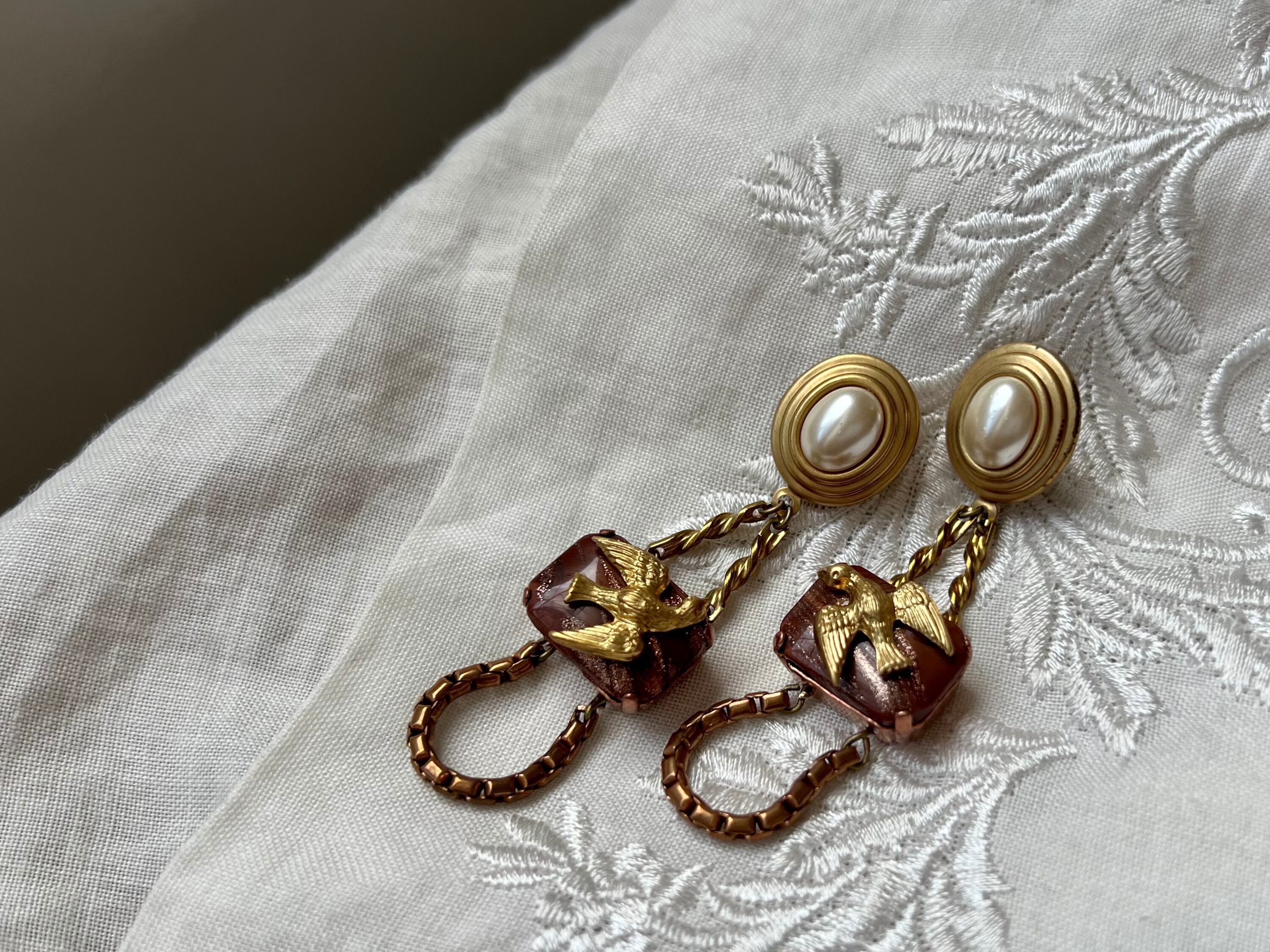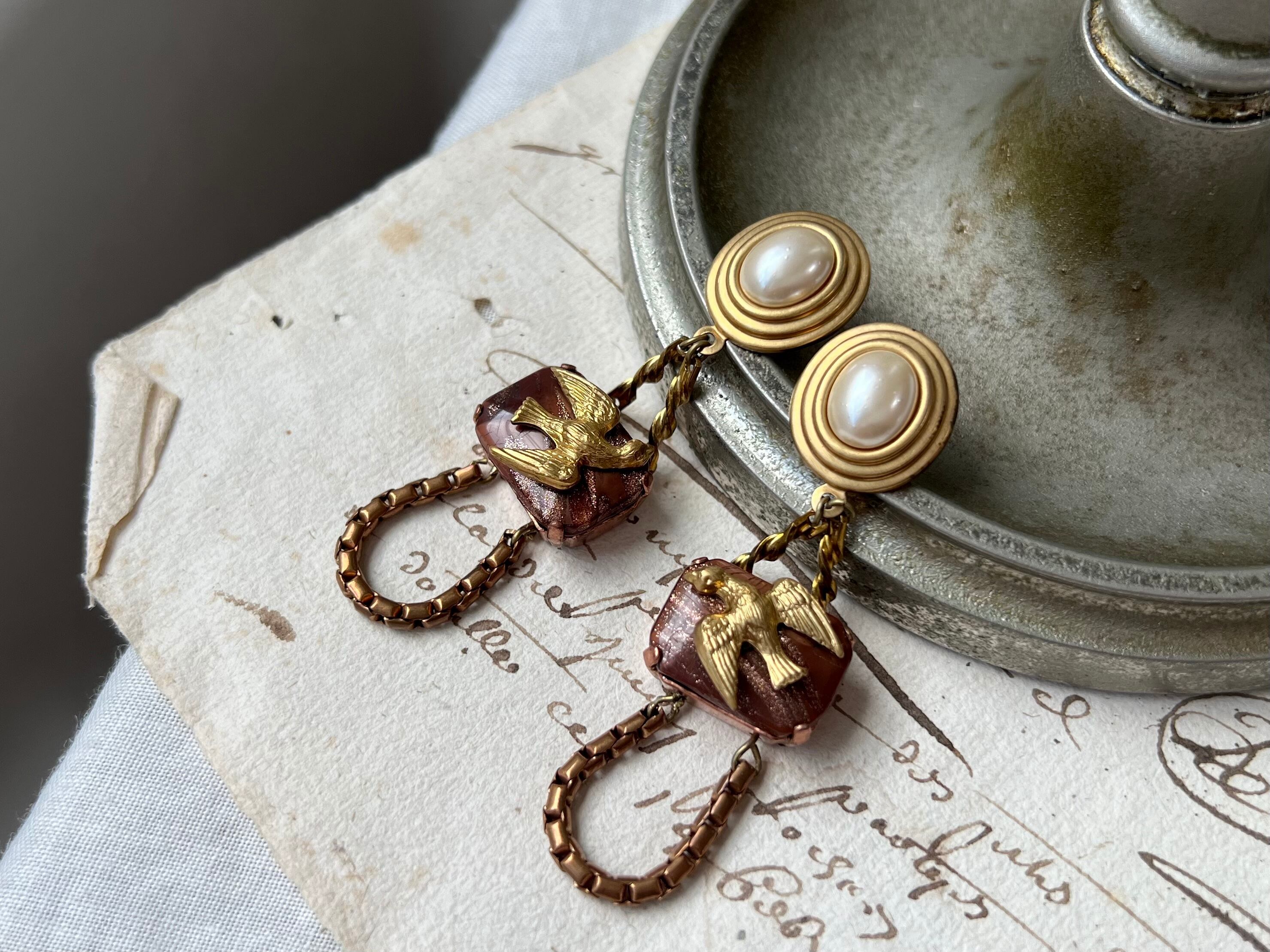 ヴィンテージパーツを使用してピアスを作りました。