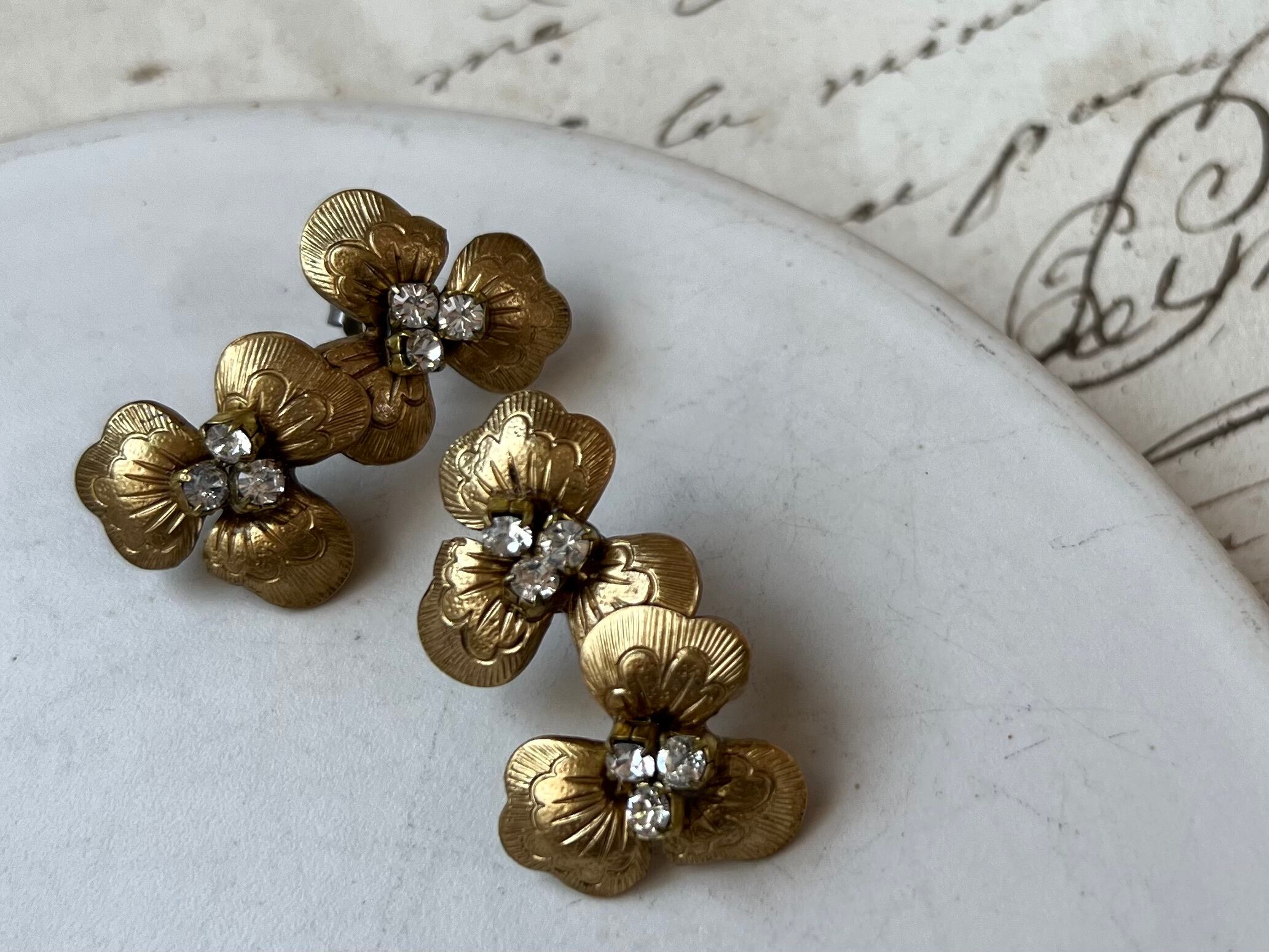 可憐なお花にスワロフスキーをギュッと詰め込んで重ねたロマンチックなデザインで、耳元を明るく飾ります。