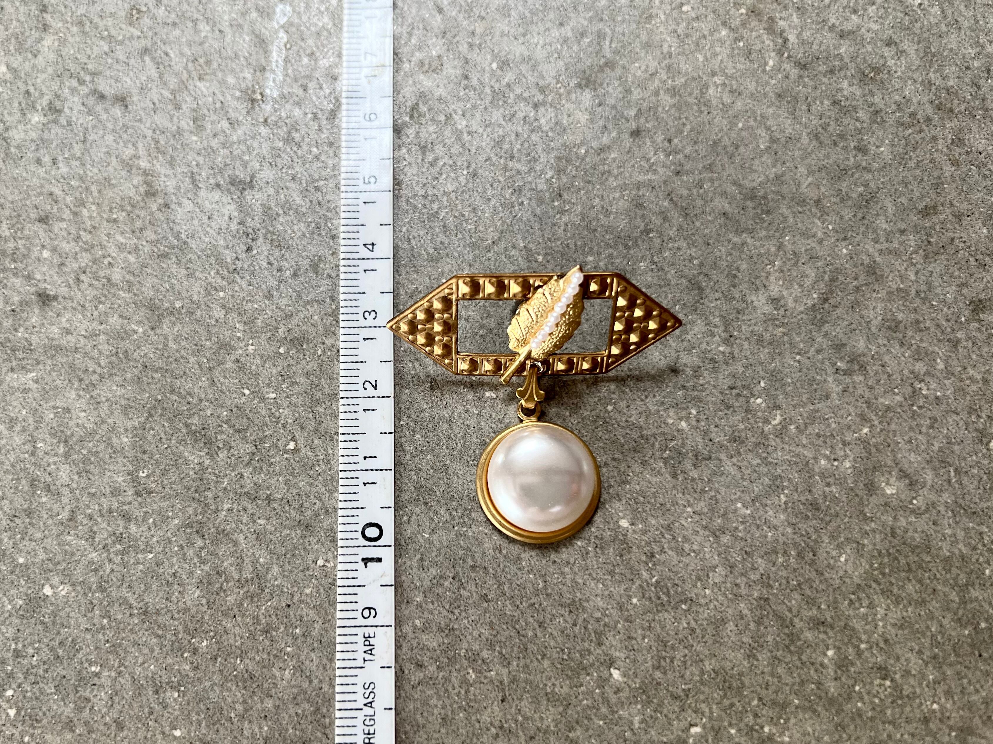 個性的なブラスに可愛らしいリーフチャーム置き、スッキリとしたホワイトのパールを添えました。