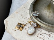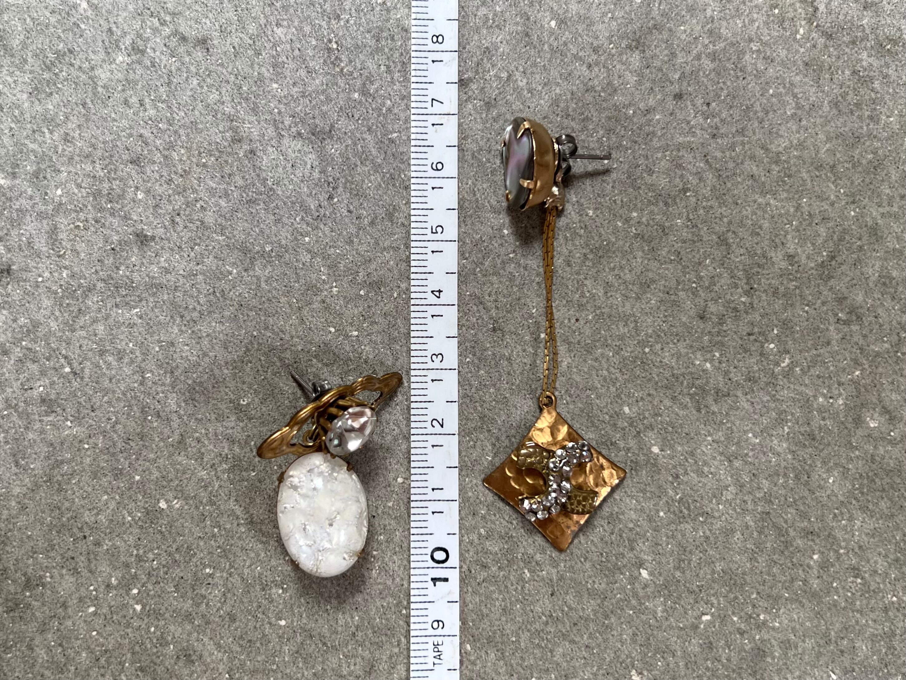 ヴィンテージパーツを使用して、アシンメトリーなピアスを作りました。