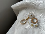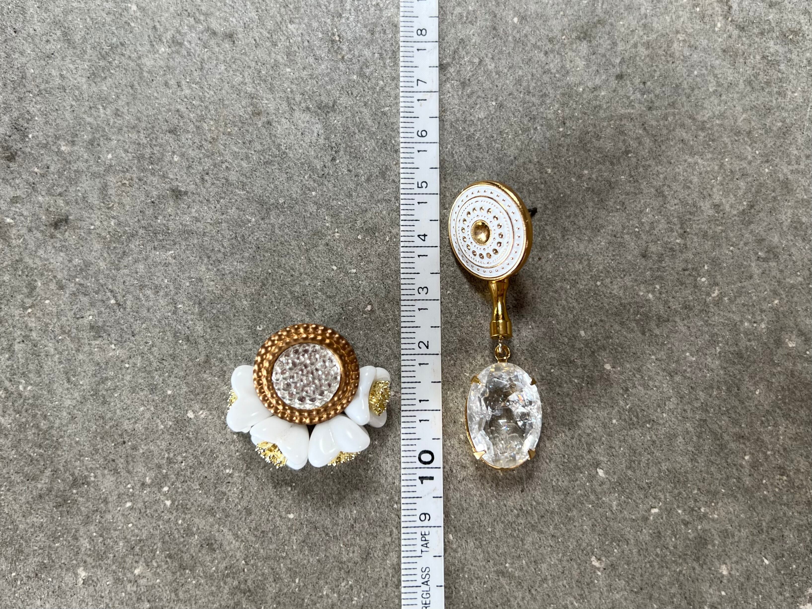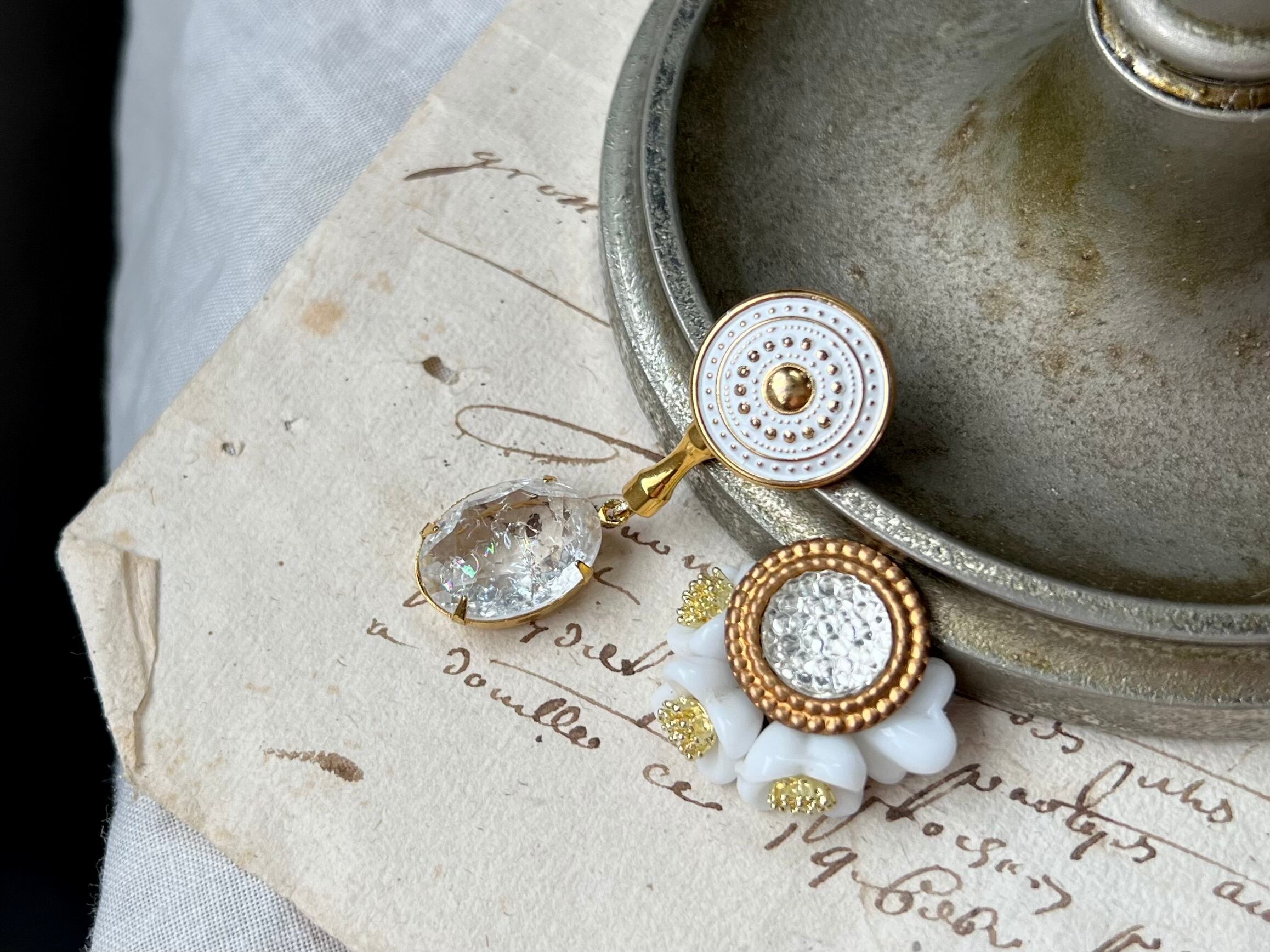 ヴィンテージパーツを使用して、アシンメトリーなピアスを作りました。