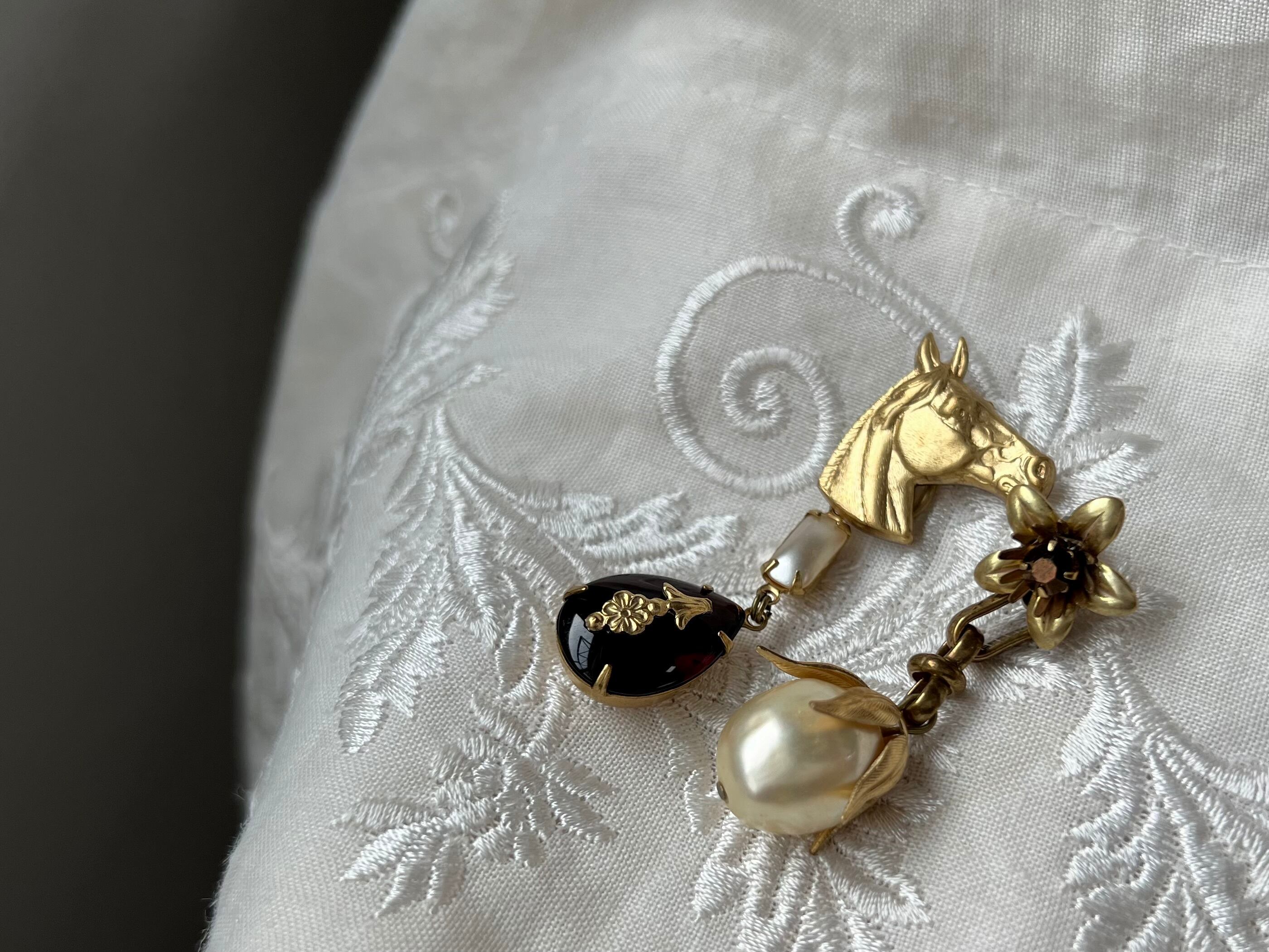 パールをベースにボタニカルパーツとホースチャームでアクセントをつけ、クラシカルな雰囲気ながら個性的に仕上げました。