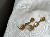 ヴィンテージパーツを使用してアシンメトリーなピアスを作りました。