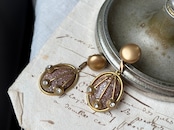 リズム良く散らしたヴィンテージガラスも上品な雰囲気で、シンプルなデザインながら程よい存在感もあり、装いの良いアクセントになります。