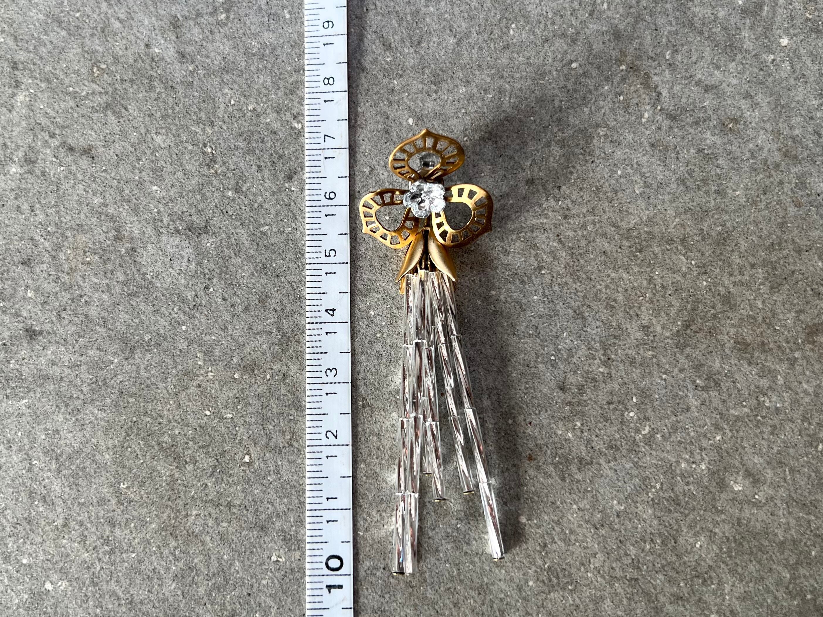 ボタニカルパーツの中央にフラワーカットが施されたスワロフスキーを置いたカボションに、ガラスチューブを添えました。