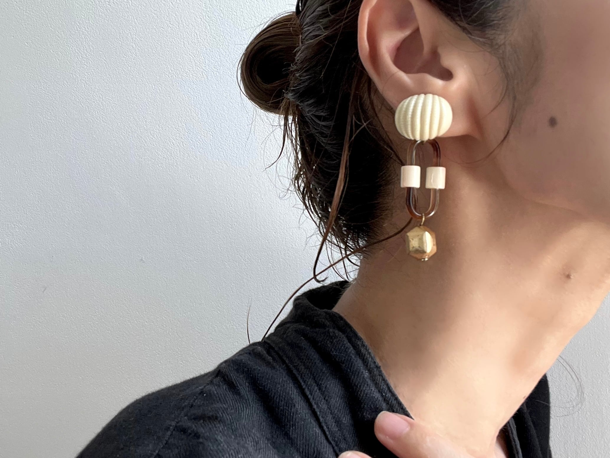 遊び心に溢れ、存在感がありつつも、肌馴染みの良いアイボリーカラーで柔らかな雰囲気を纏った一品です。