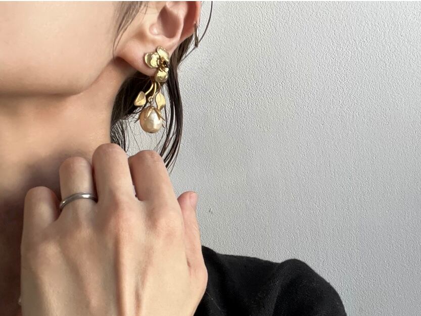 そこにまろやかなガラスパールを添えて、柔らかくロマンチックな雰囲気にまとめました。