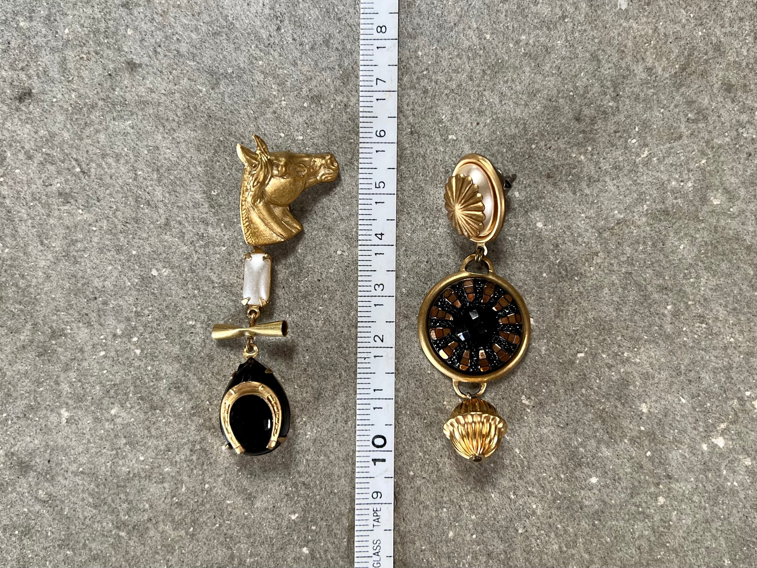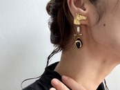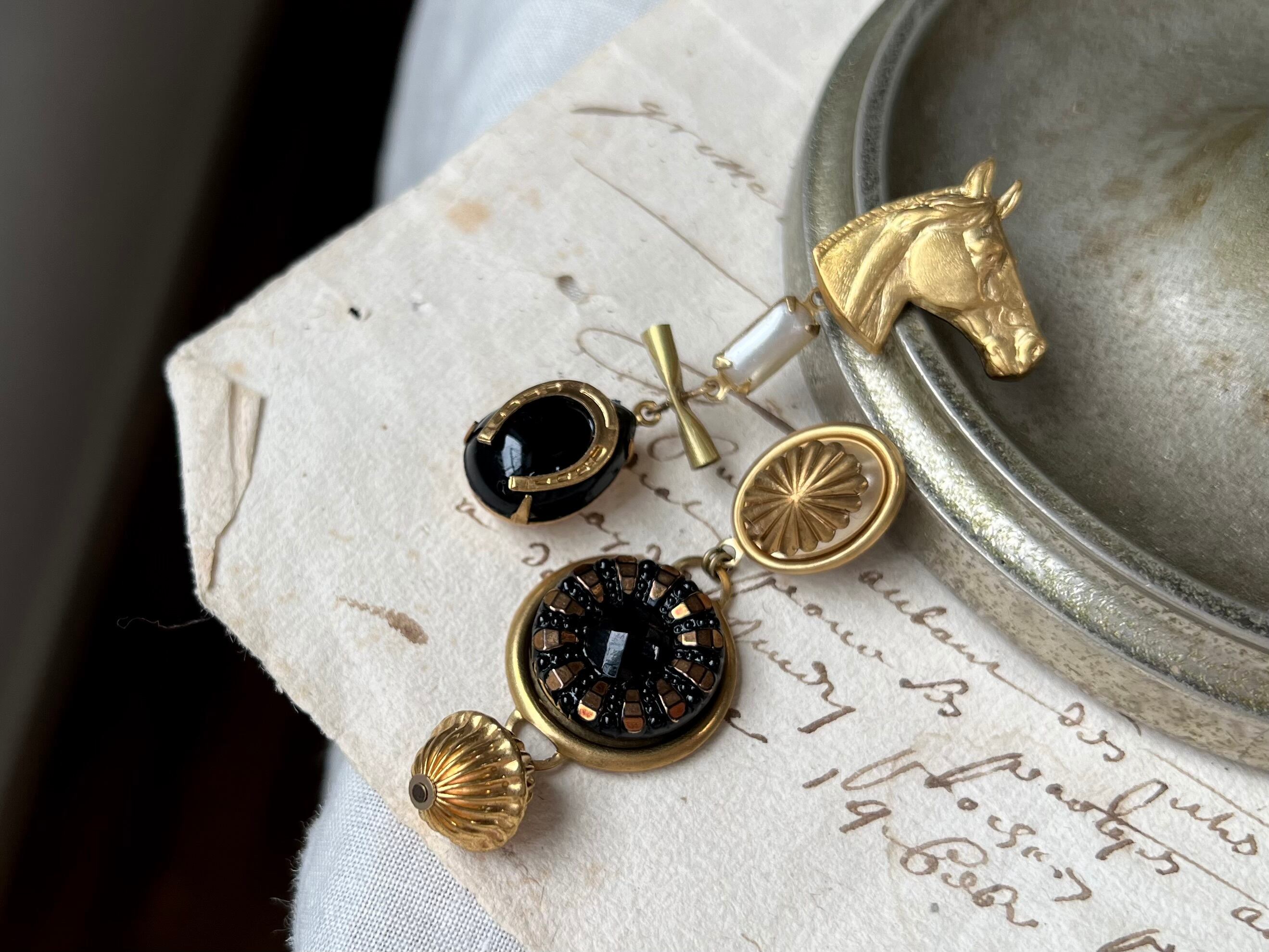 ヴィンテージパーツを使用してアシンメトリーなピアスを作りました。