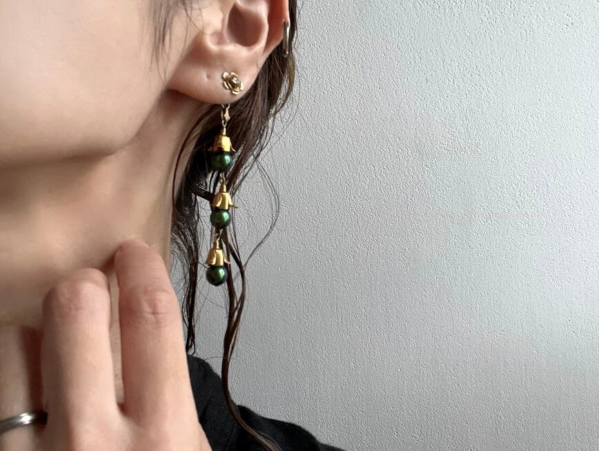 ボタニカルパーツとパールで構成されたクラシカルでロマンチックな作品です。