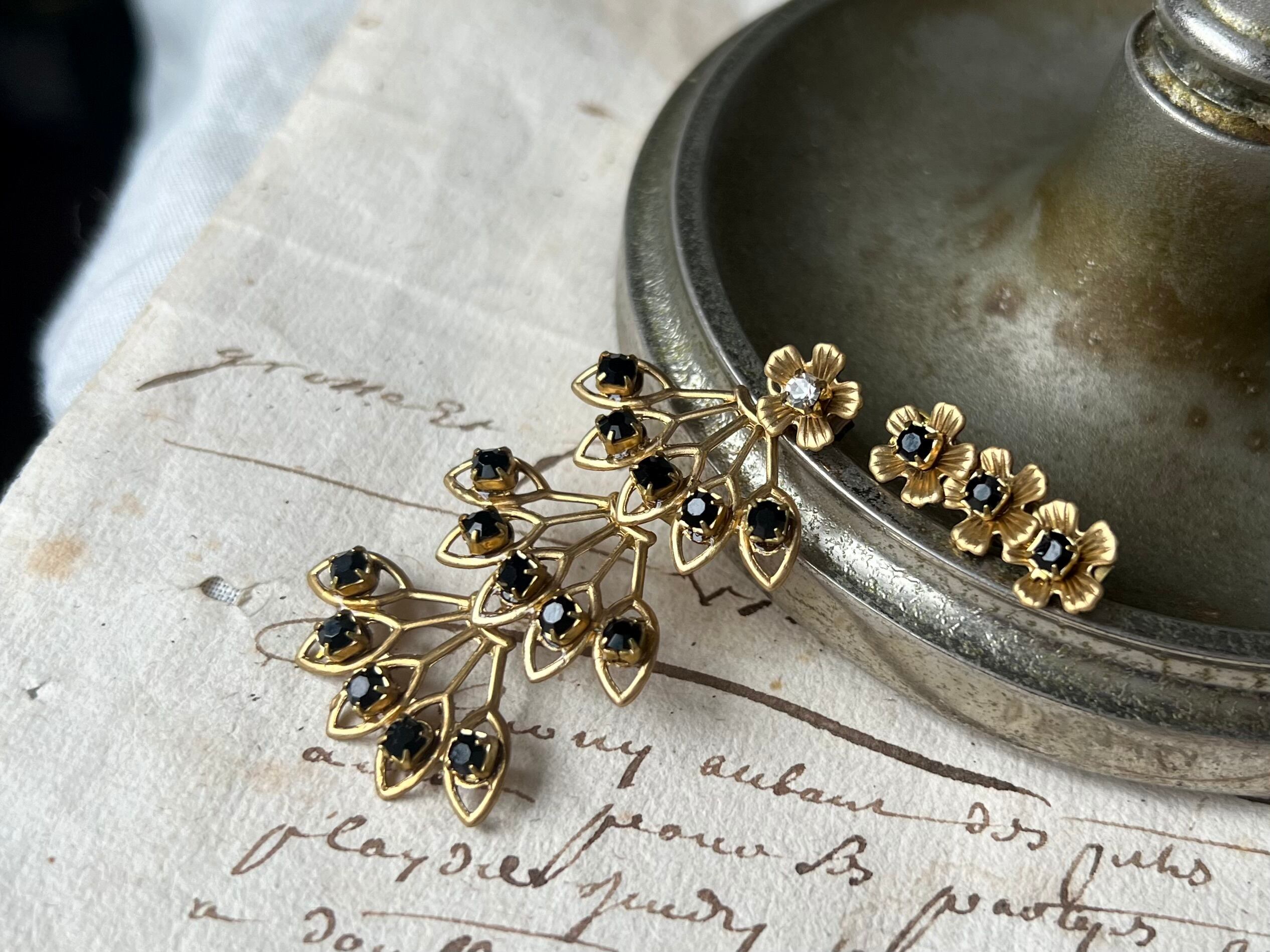 ミリアムハスケルの小花をカボションに、スワロフスキーをふんだんに使用しました。