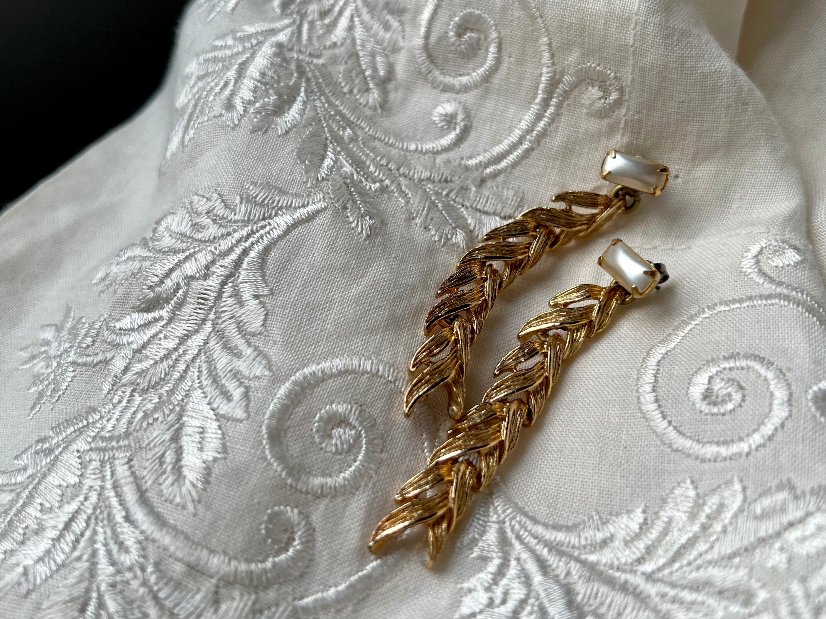 ヴィンテージチェーンとミリアムハスケルのパールを組み合わせてピアスを作りました。