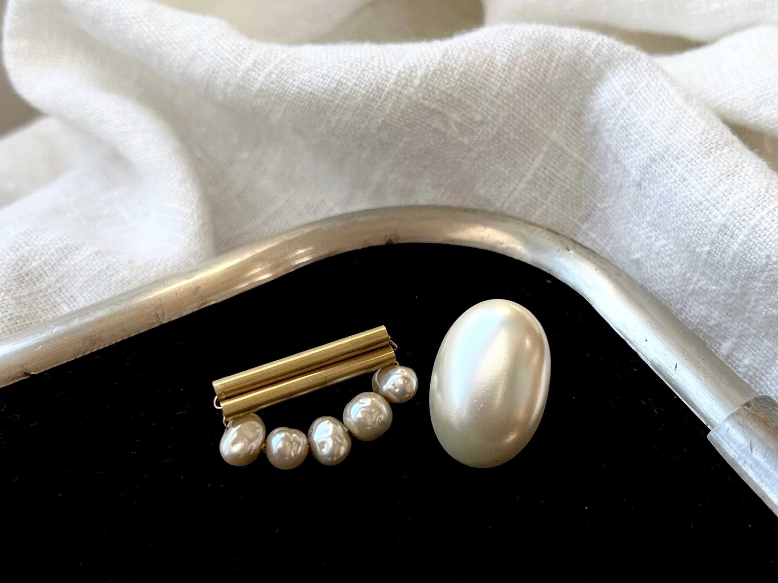 シンプルなガラスパールカボションと、真鍮のチューブにあしらった淡水パールのセットになります。
