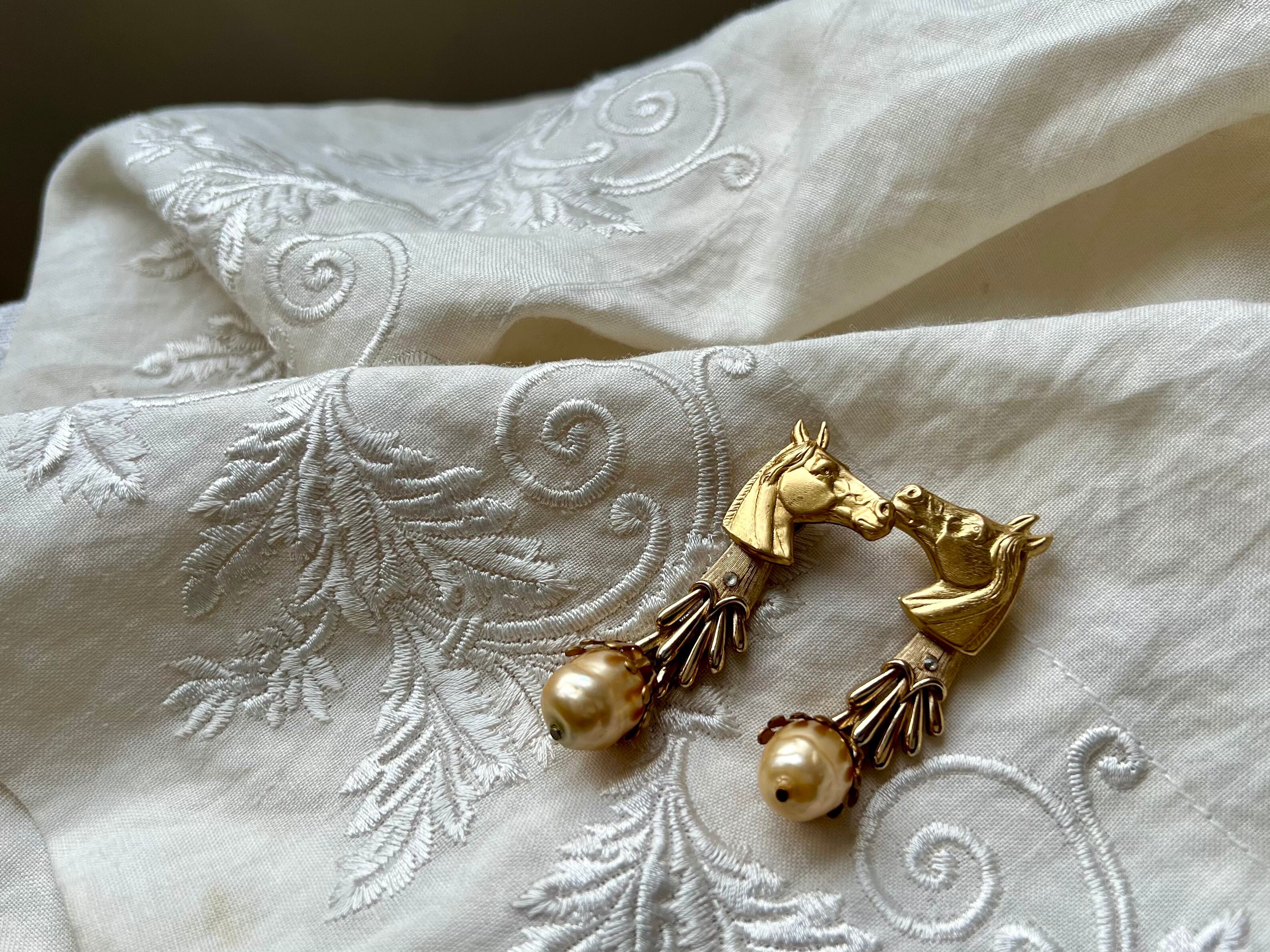 老舗コスチュームジュエリーブランドであるtrifariのヴィンテージチェーンに、個性的なホースヘッドを合わせ、存在感のあるデザインに仕上げました。