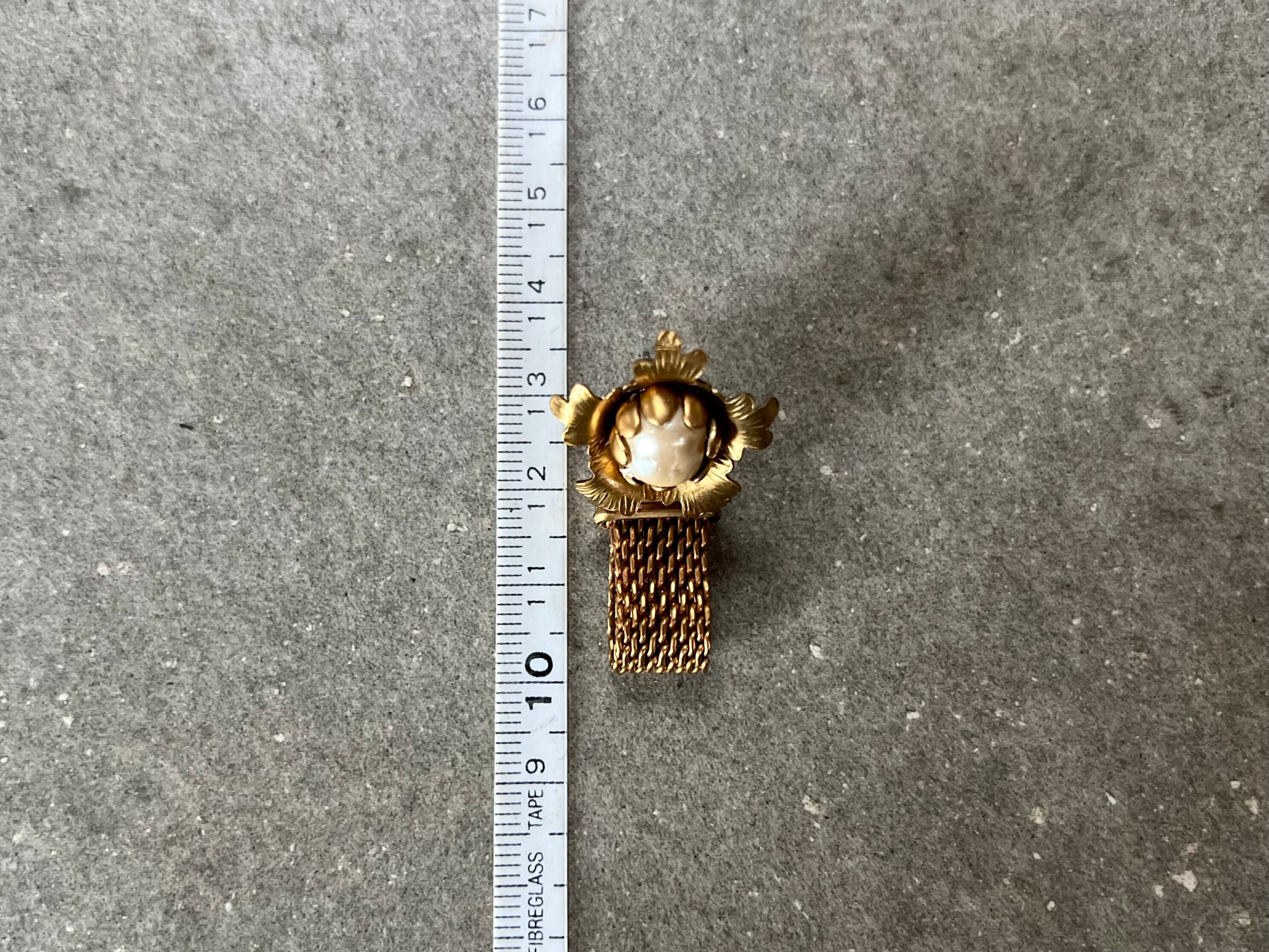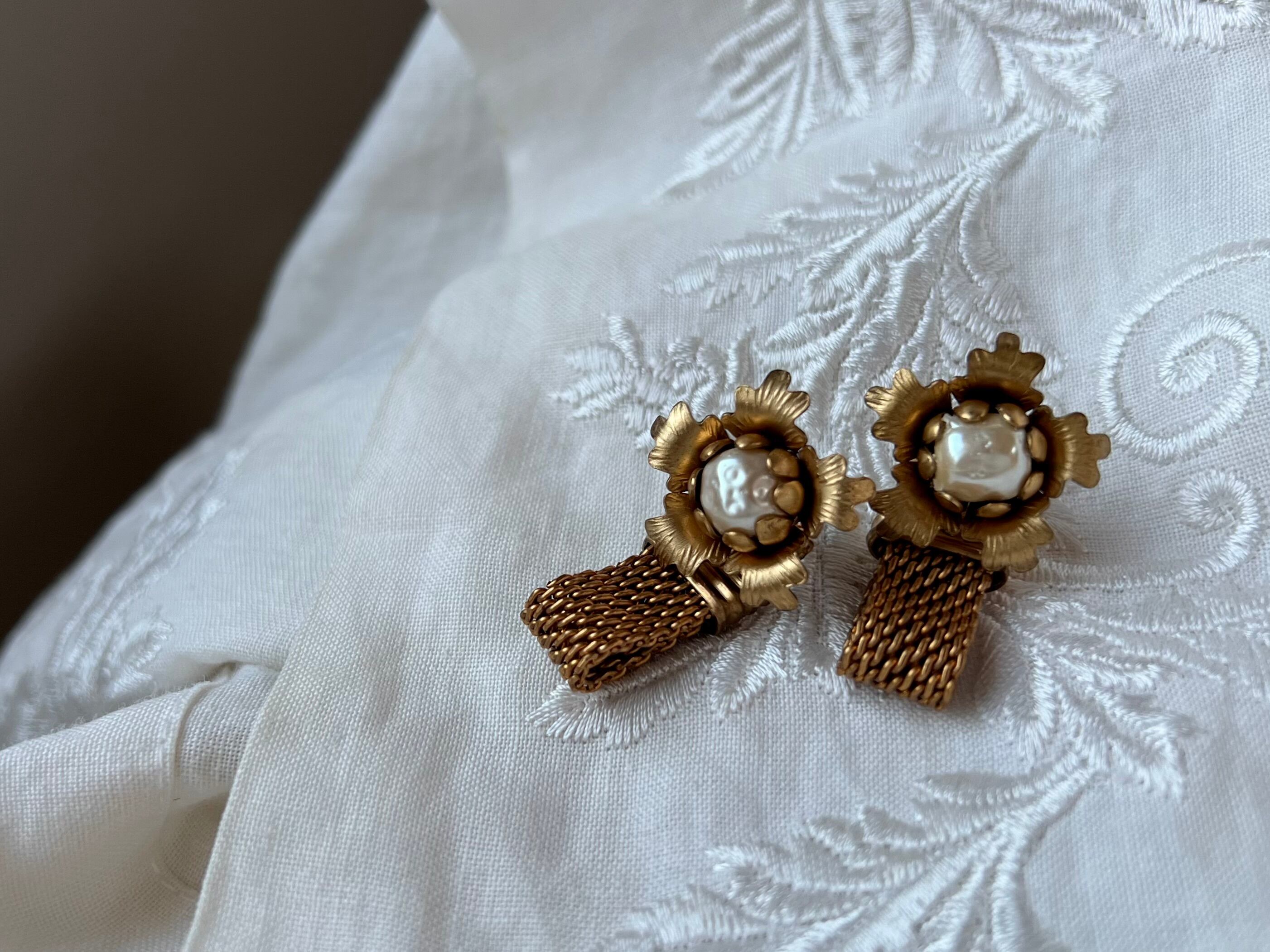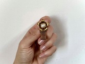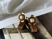 ミリアムハスケルのお花にパールを埋めて、リボンチェーンを添えています。