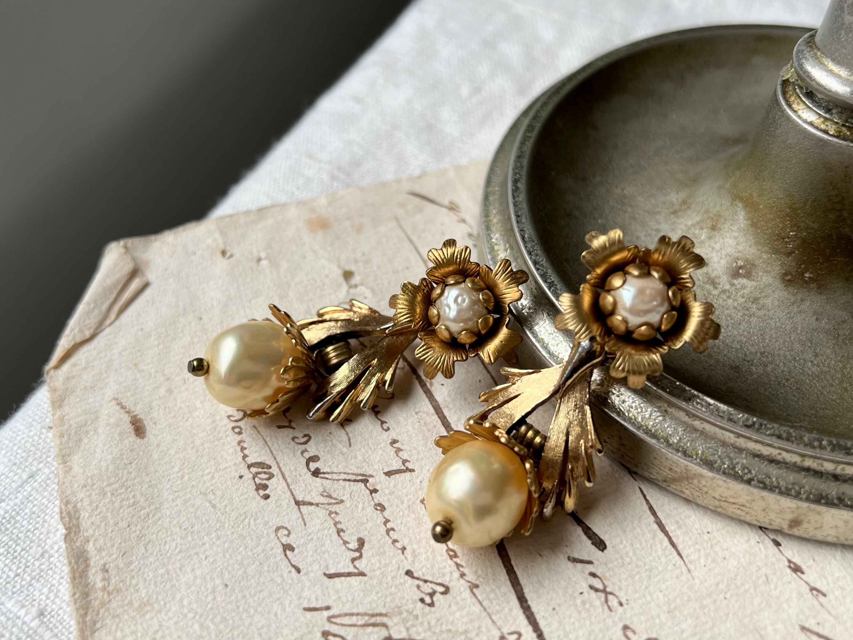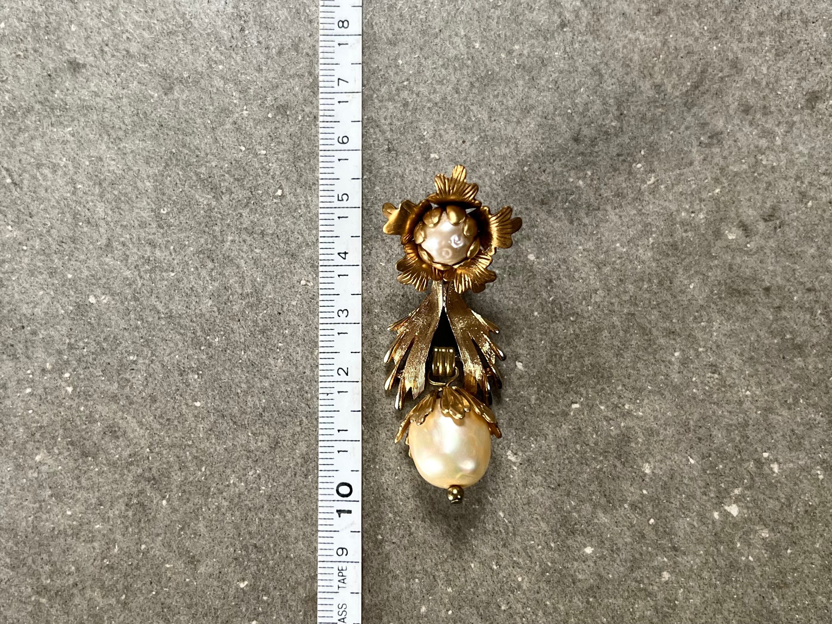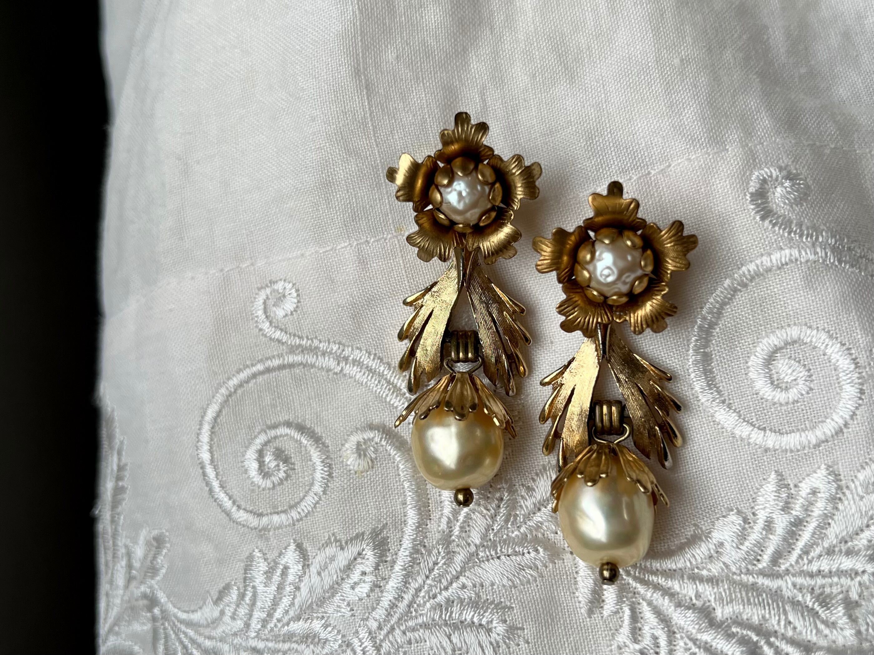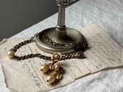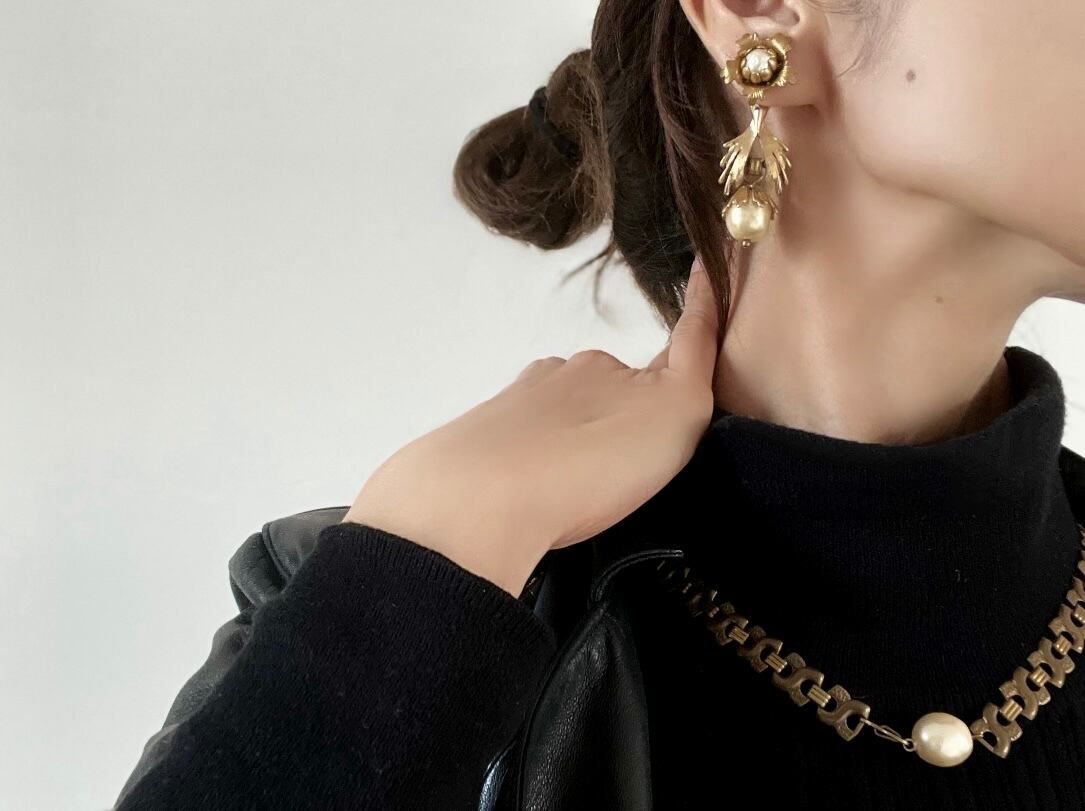 老舗コスチュームジュエリーブランドであるtrifariのヴィンテージチェーンにガラスパールをミリアムハスケルのボタニカルパーツで飾った贅沢な一品です。