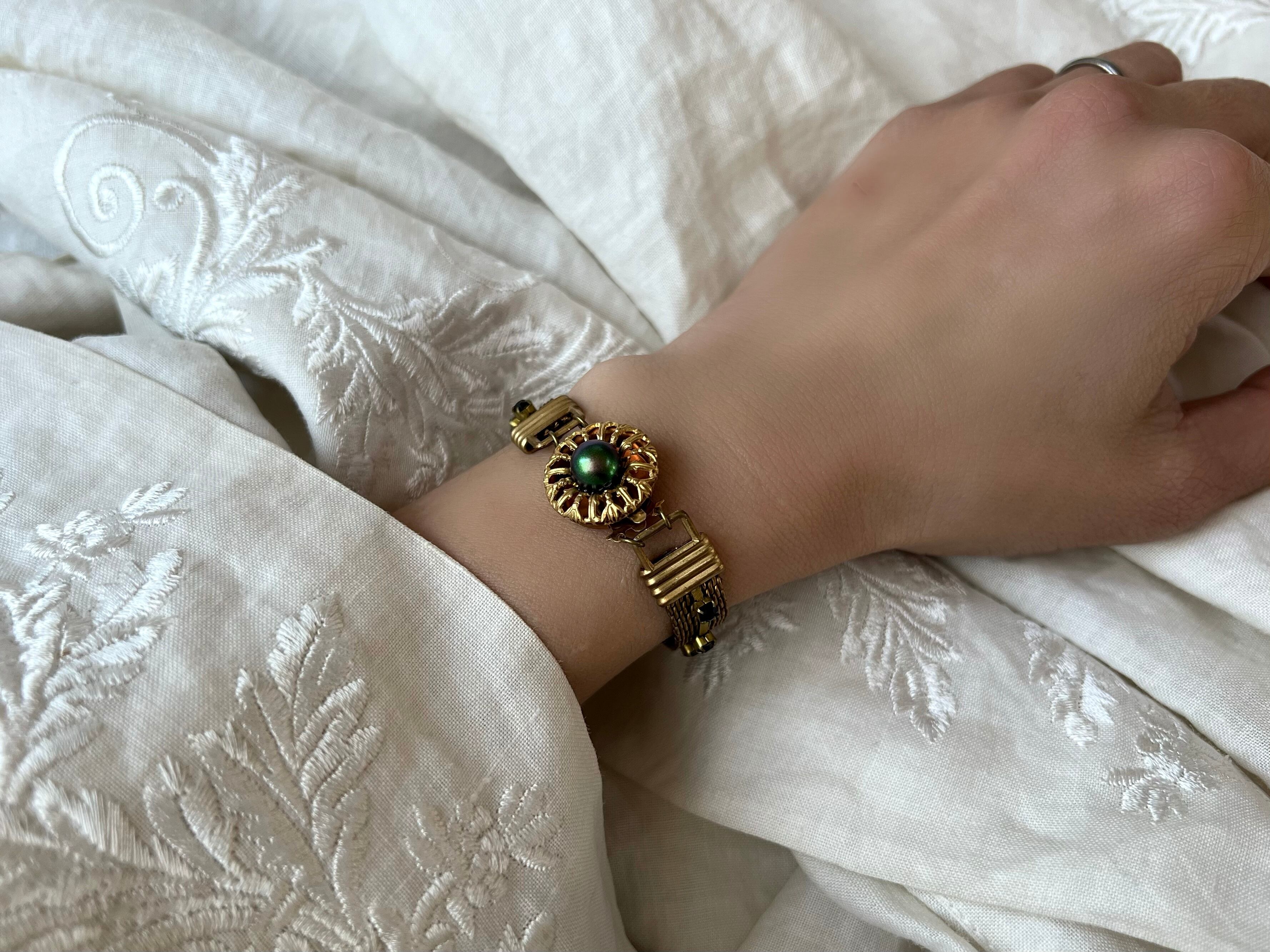 手首をシックかつ華やかにしてくれるので、デイリーからお呼ばれまで幅広くお使い頂ける一品です。