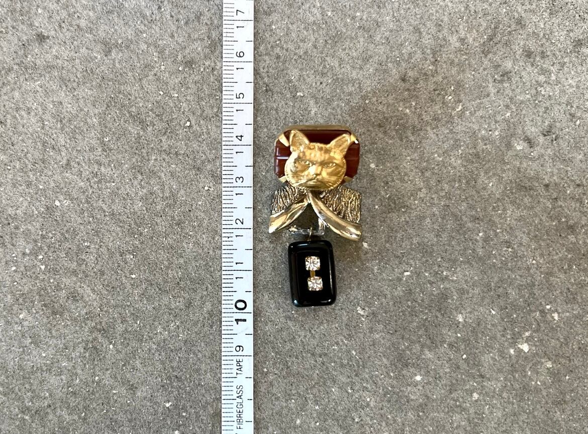レンガ色のカボションにネコのチャームを置いてお茶目な雰囲気にしました。