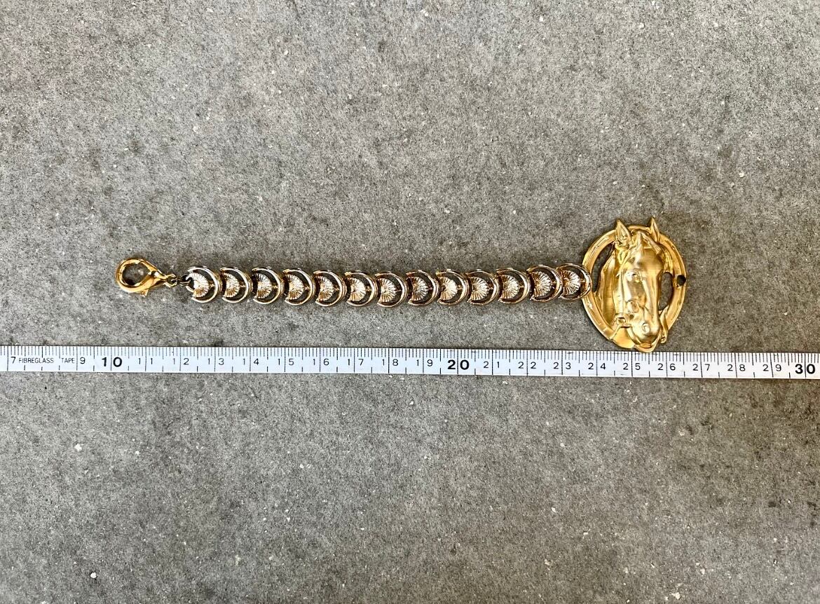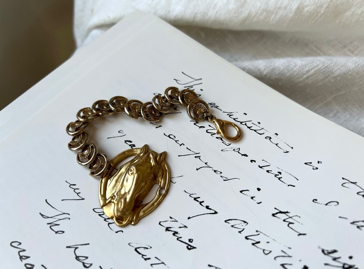 大ぶりのホースチャームをメインに個性的なチェーンを合わせていて、存在感があります。