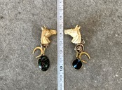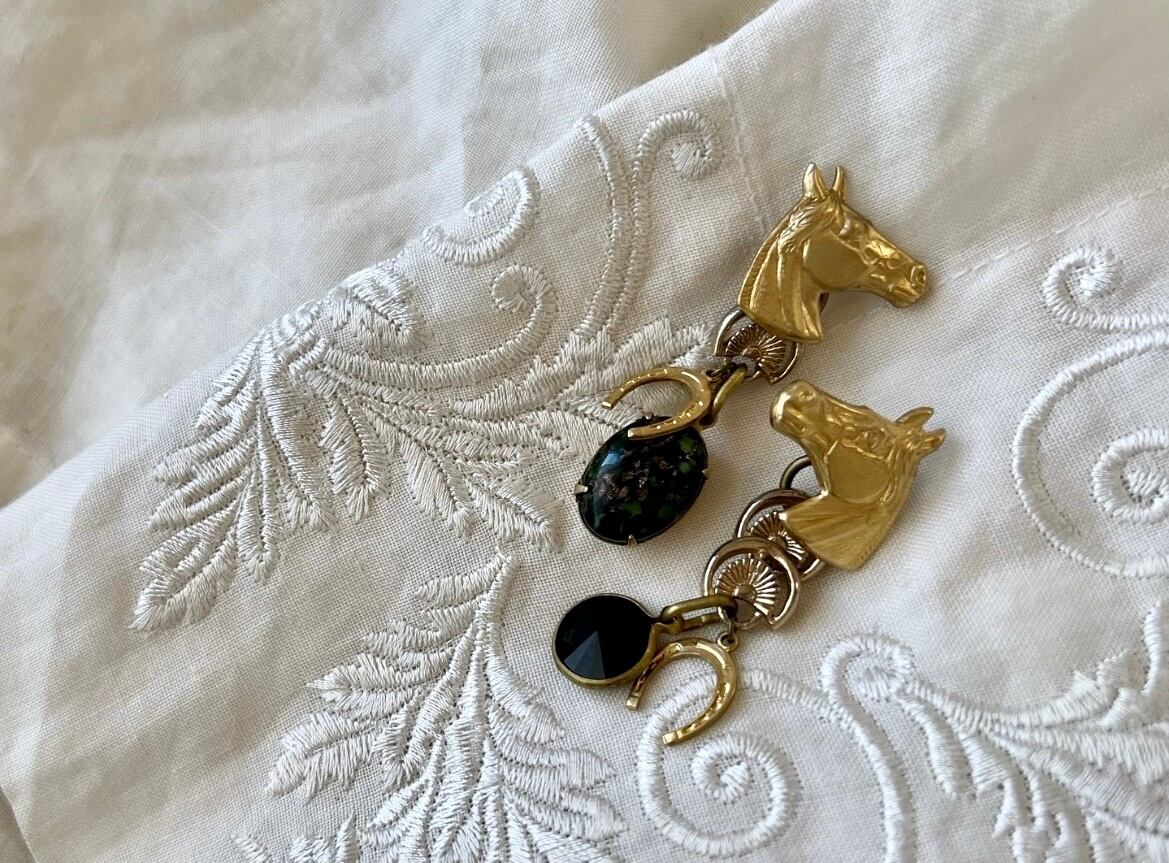 ヴィンテージパーツを使用してアシンメトリーなピアスを作りました。