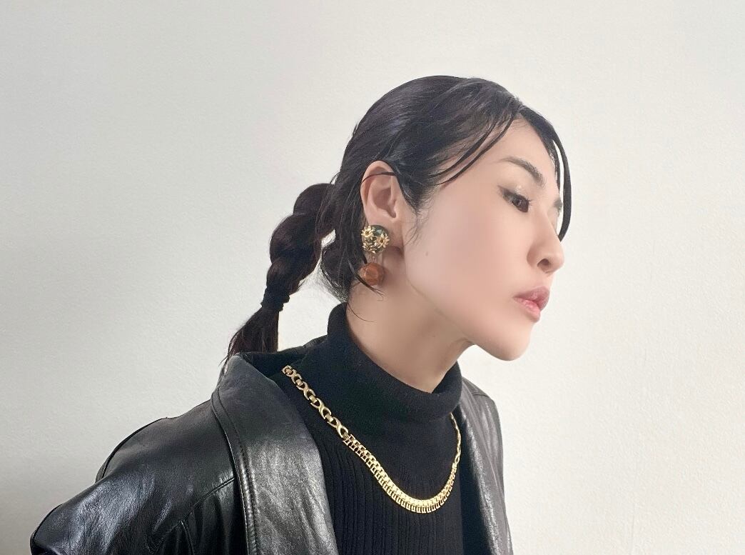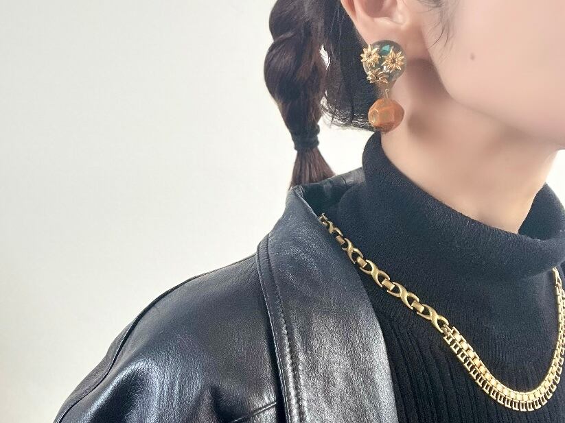 ヴィンテージパーツを使用してアシンメトリーなピアスを作りました。