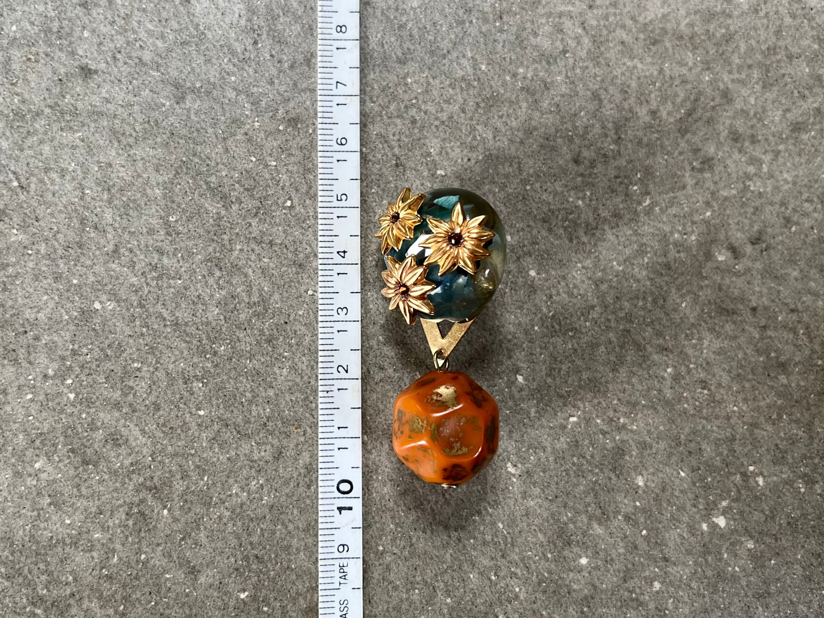 カボションのボリュームに負けない存在感のボールビーズを添えて、遊び心たっぷりのデザインに仕上げました。