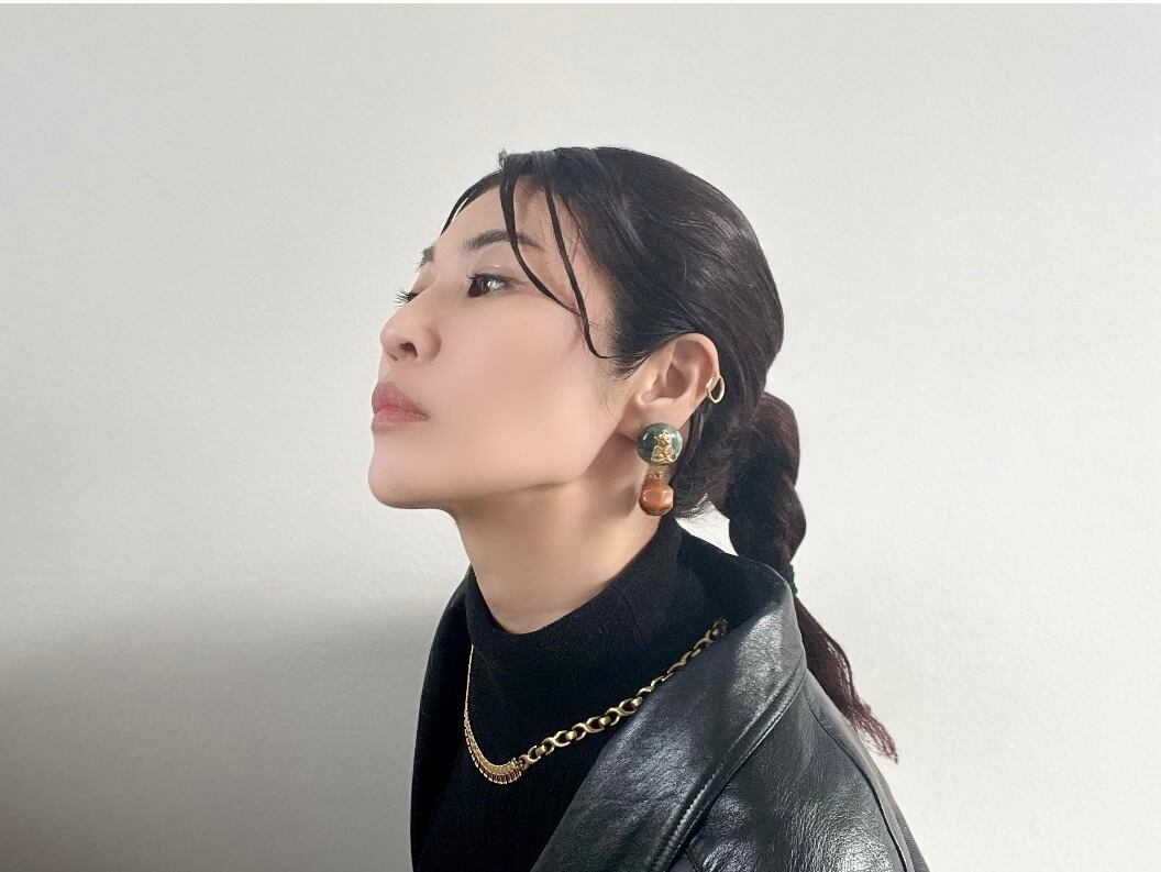 アクセントにトパーズカラーのスワロフスキーを散らして、華やかさをプラスしています。