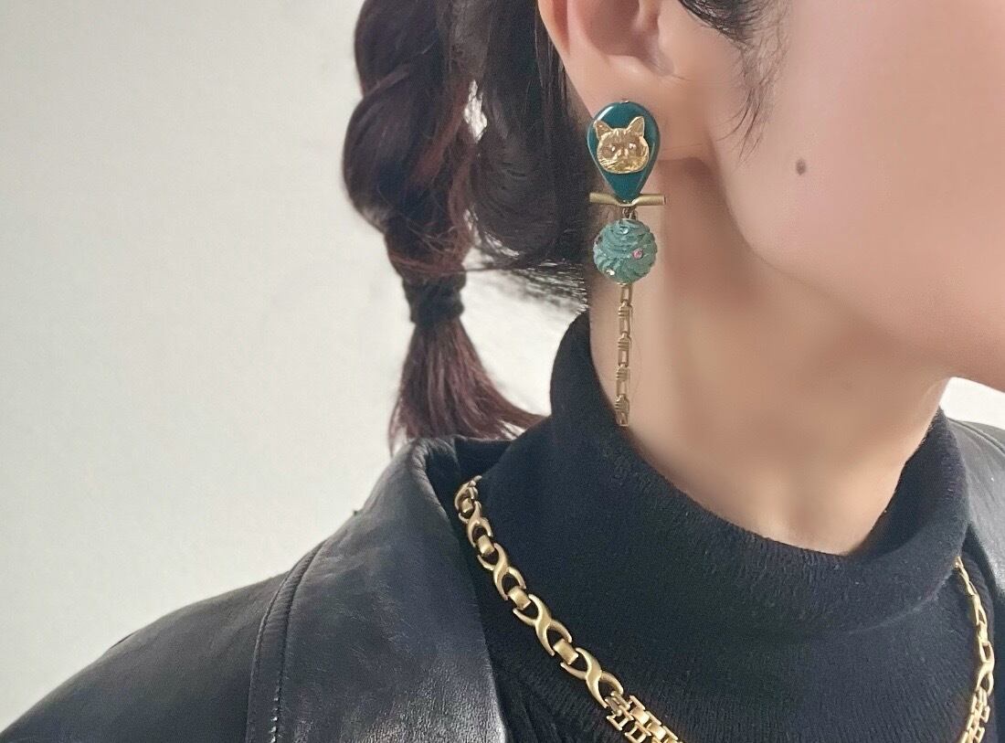 お茶目なのにどこかシックな雰囲気があり、装いの良いアクセントになる一品です。