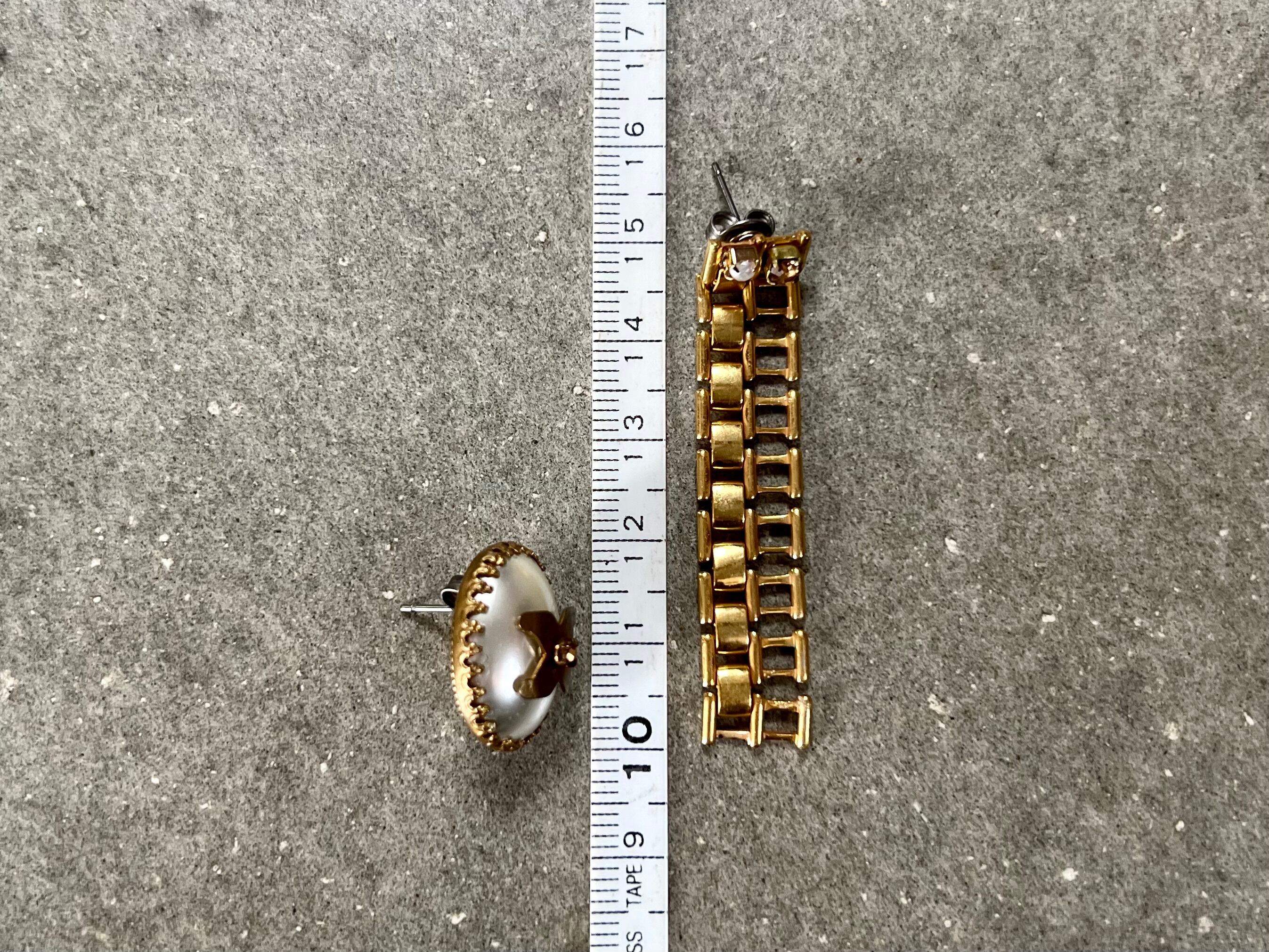 ヴィンテージパーツを使用して、アシンメトリーなピアスを作りました。