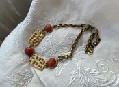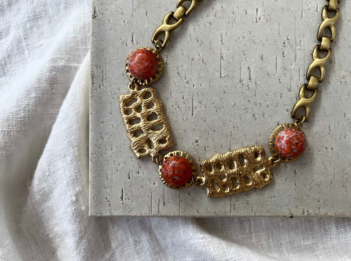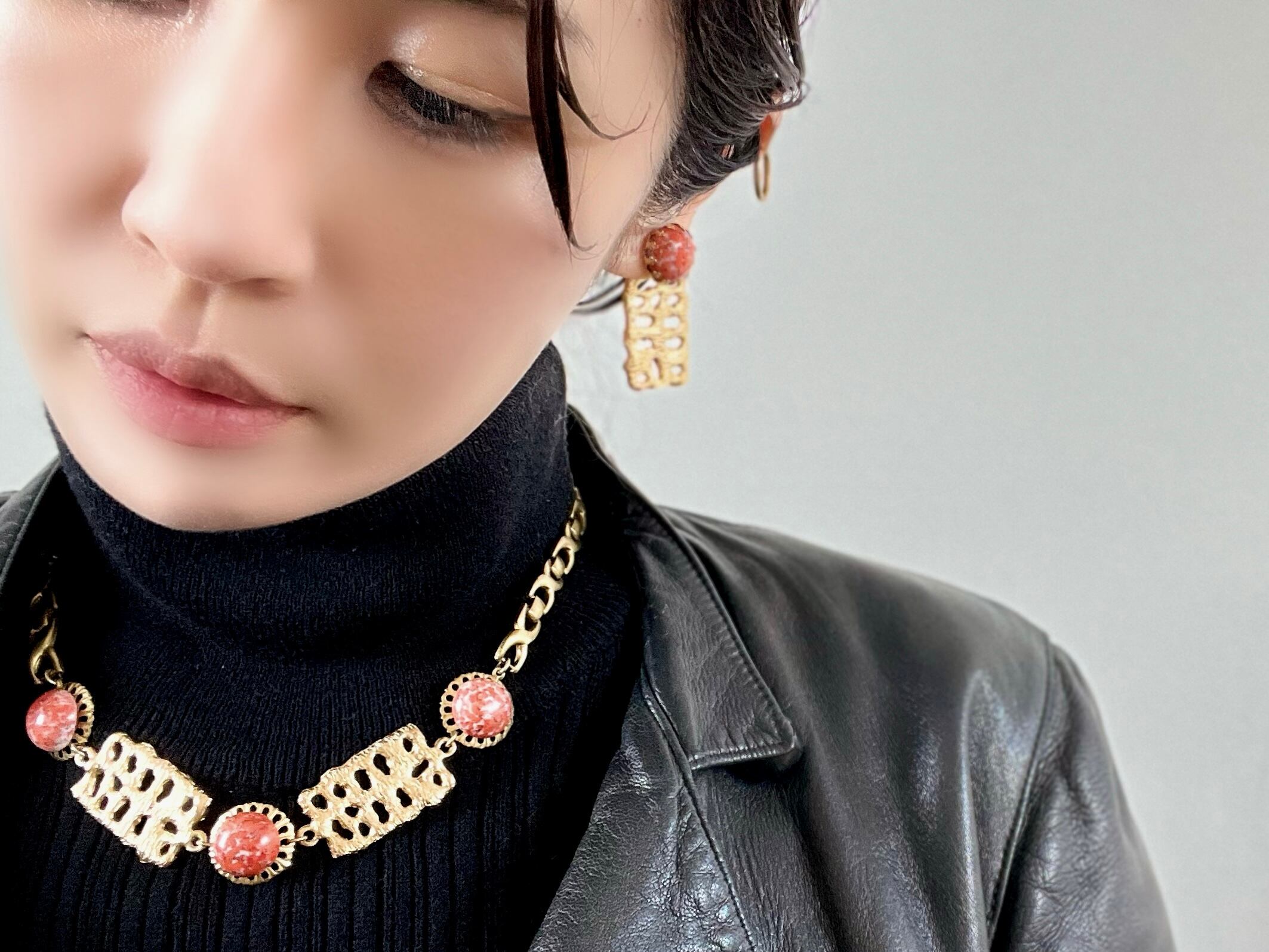 コーラルレッドのガラスドームをアクセントに、エッジの効いたチェーンを合わせています。
