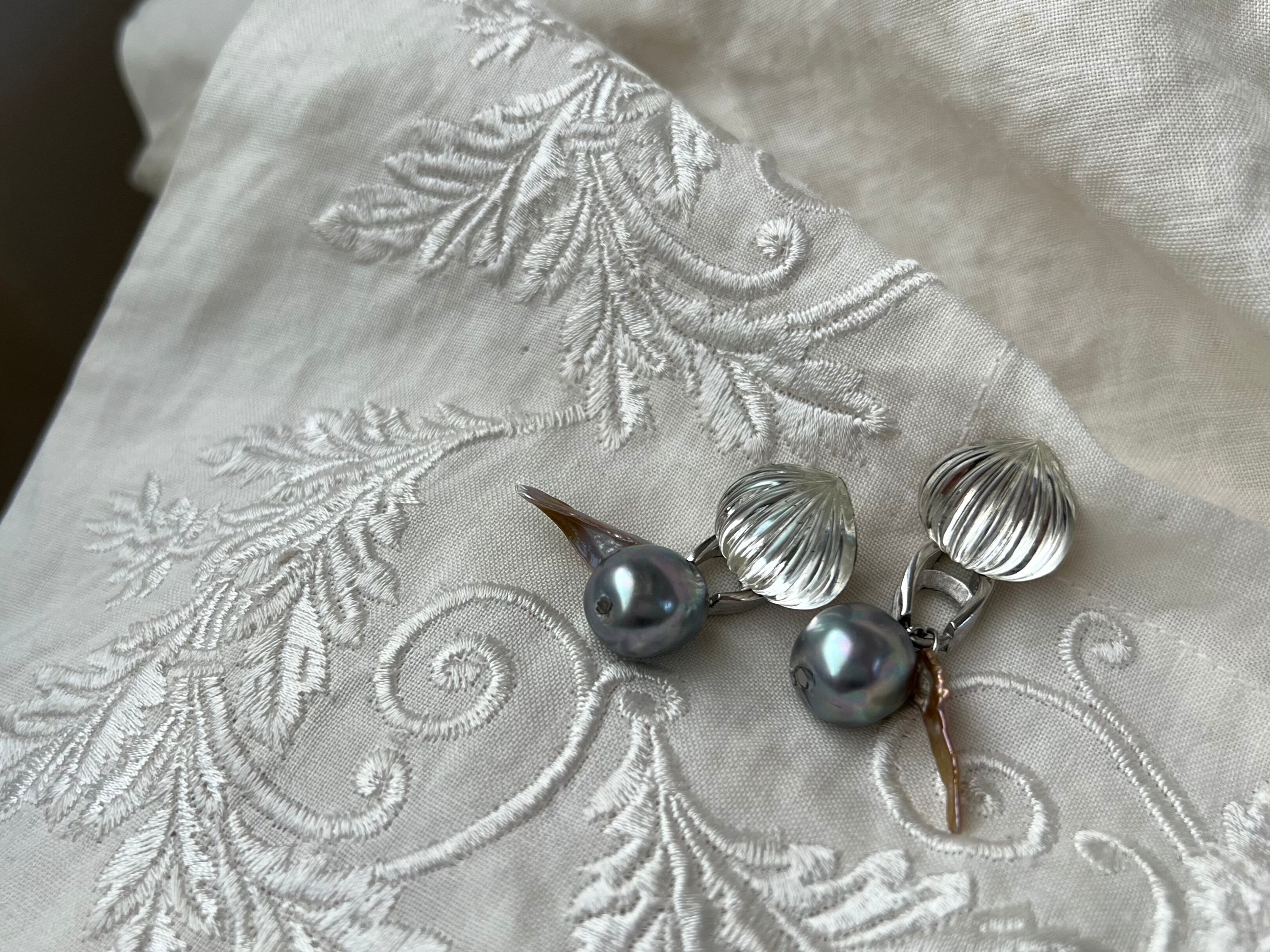 絶妙なパールのニュアンスがカボションの美しさと良く合います。