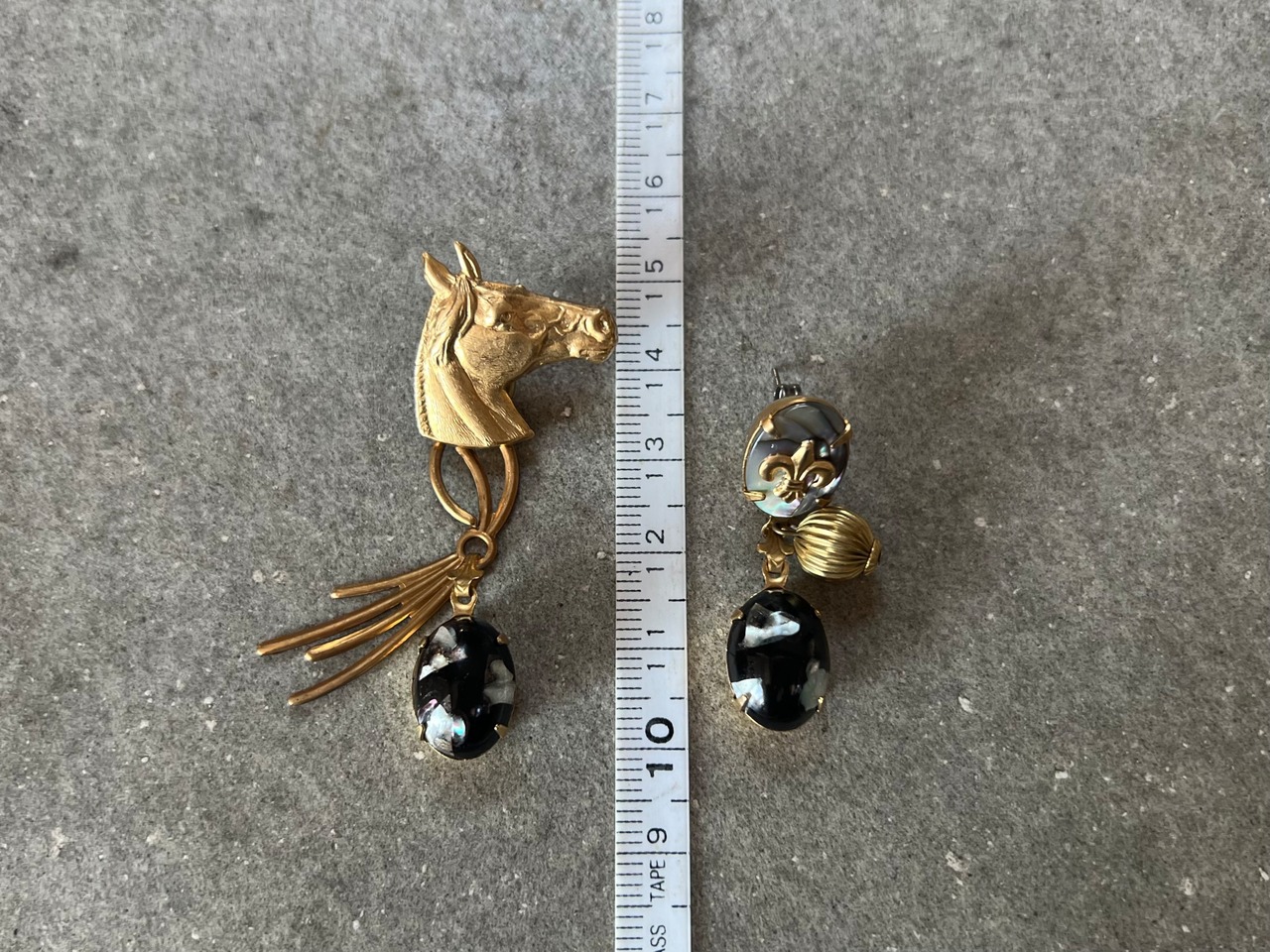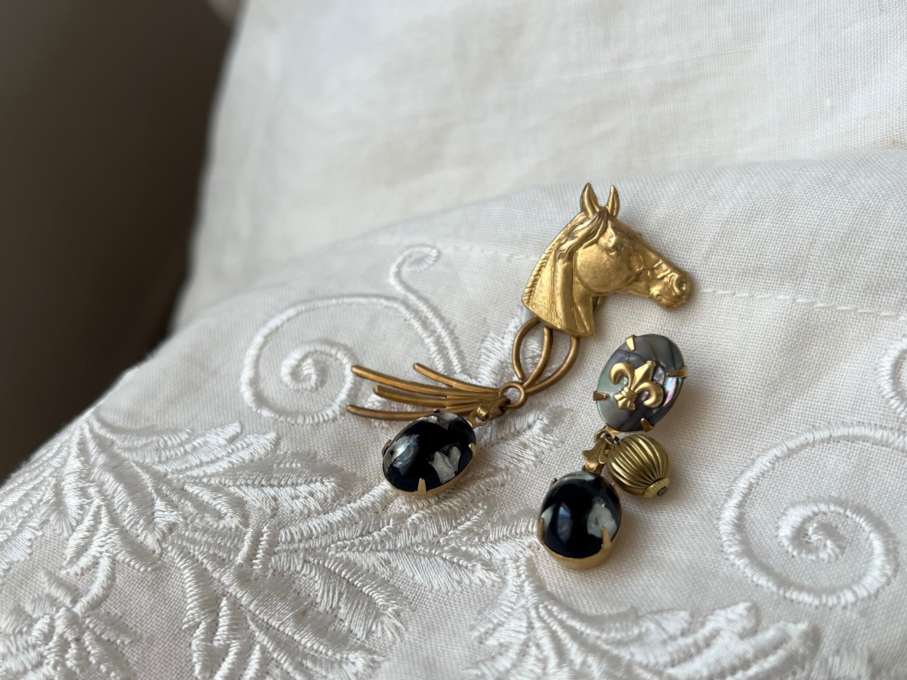 ヴィンテージパーツを使用してアシンメトリーなピアスを作りました。