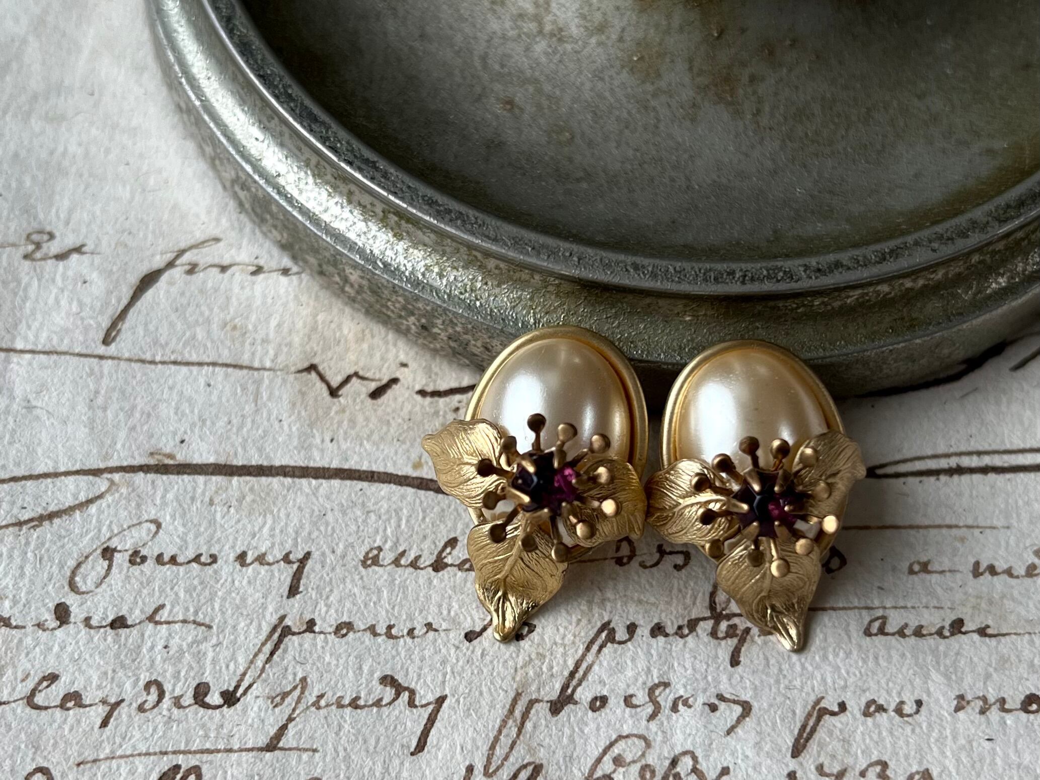 ヴィンテージパーツを使用してピアスを作りました。