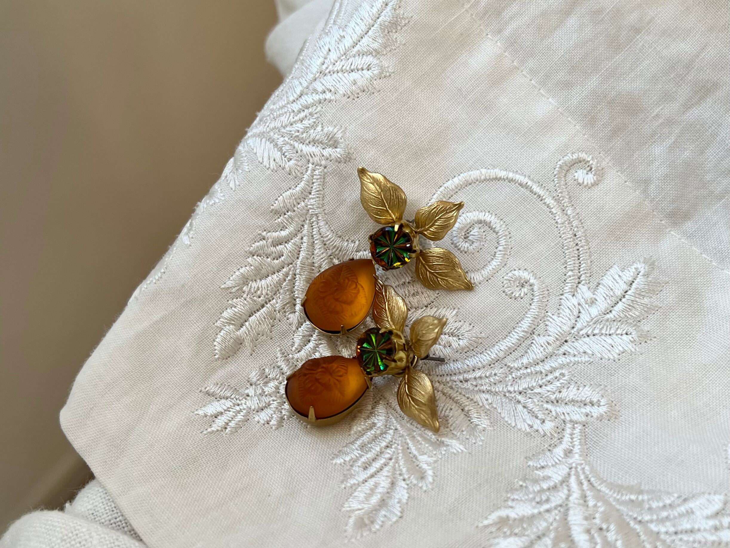 ヴィンテージパーツを使用してピアスを作りました。