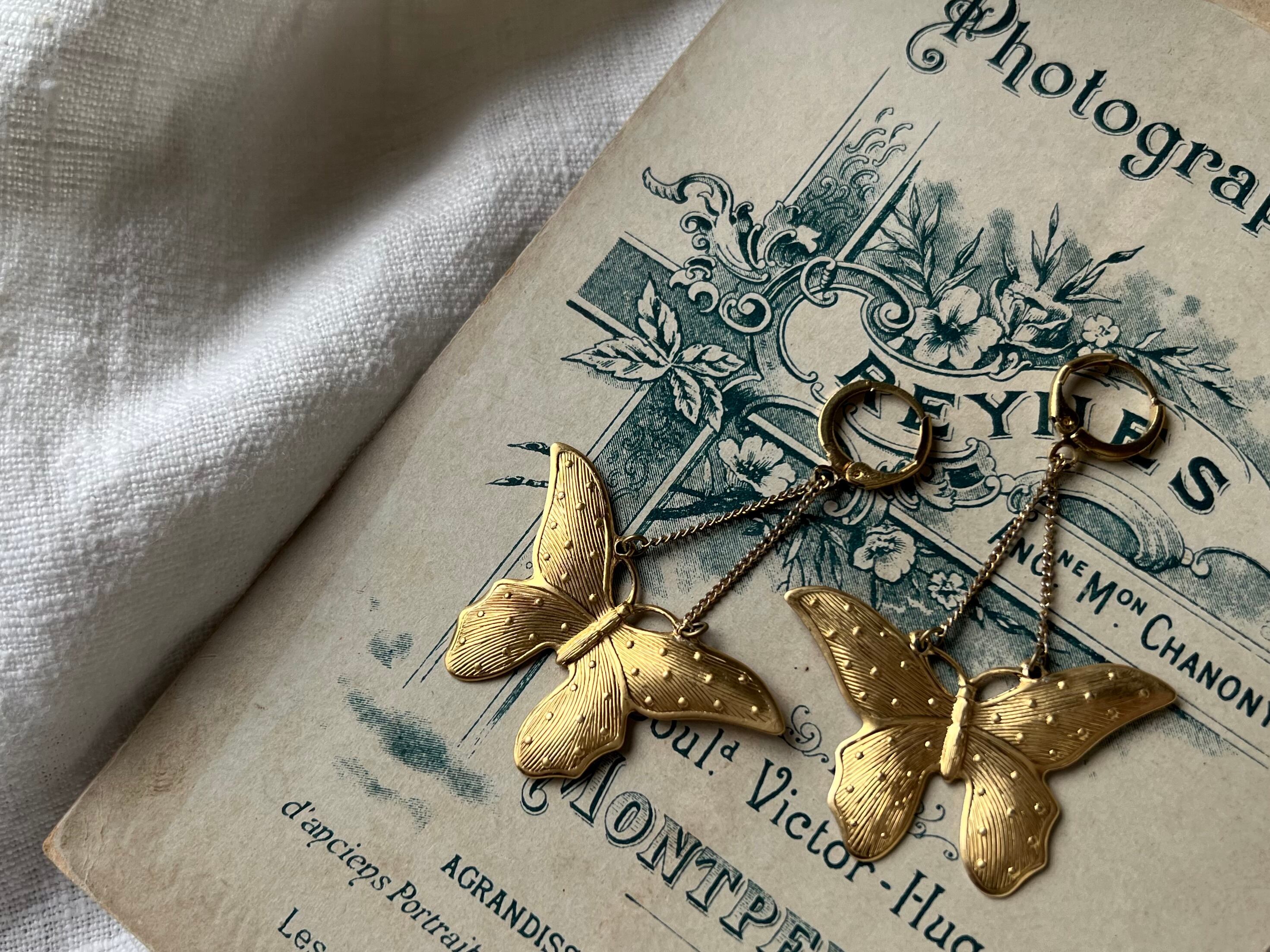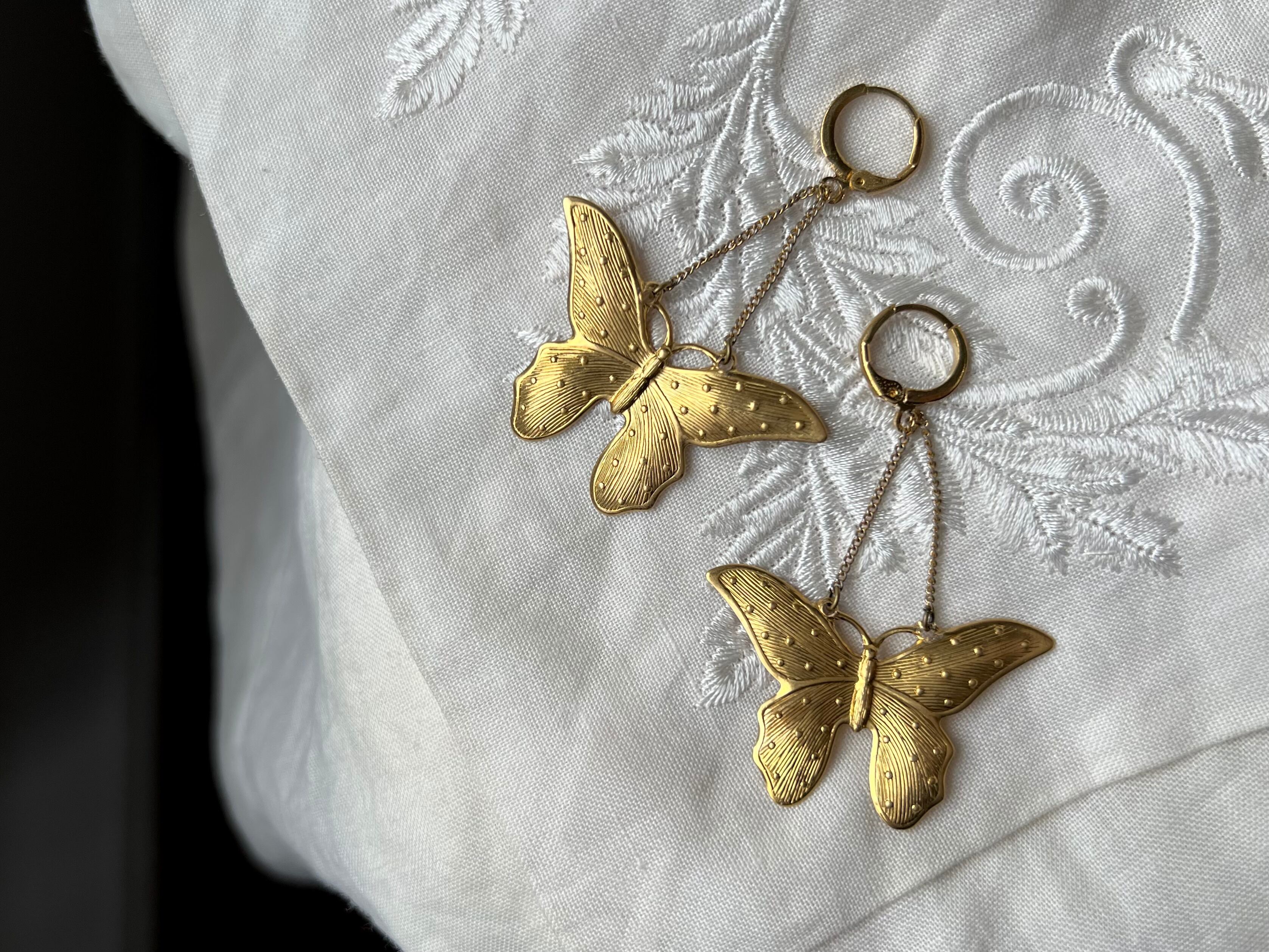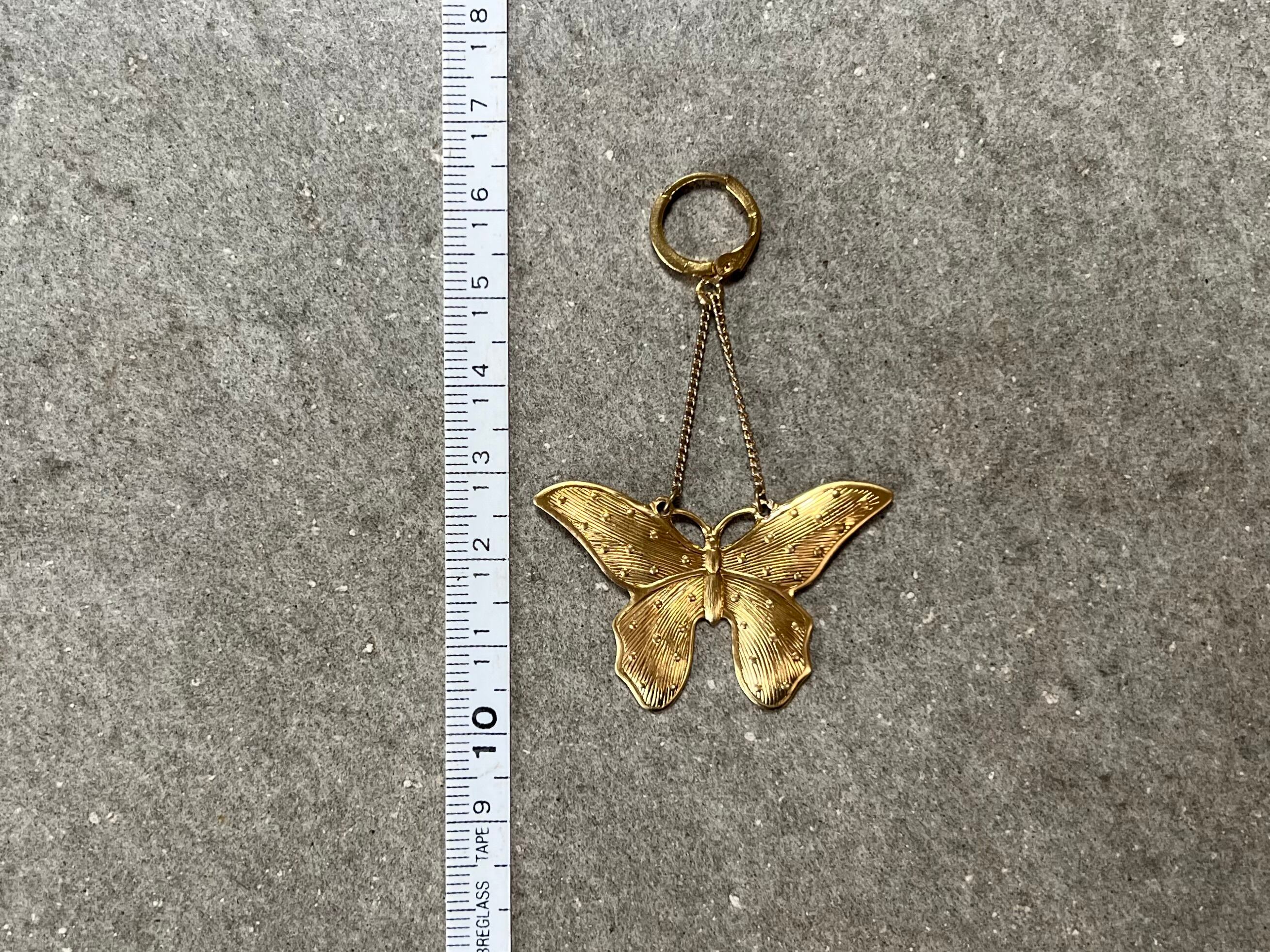 バタフライチャームにチェーンを繋いでスイングするよう仕上げています。