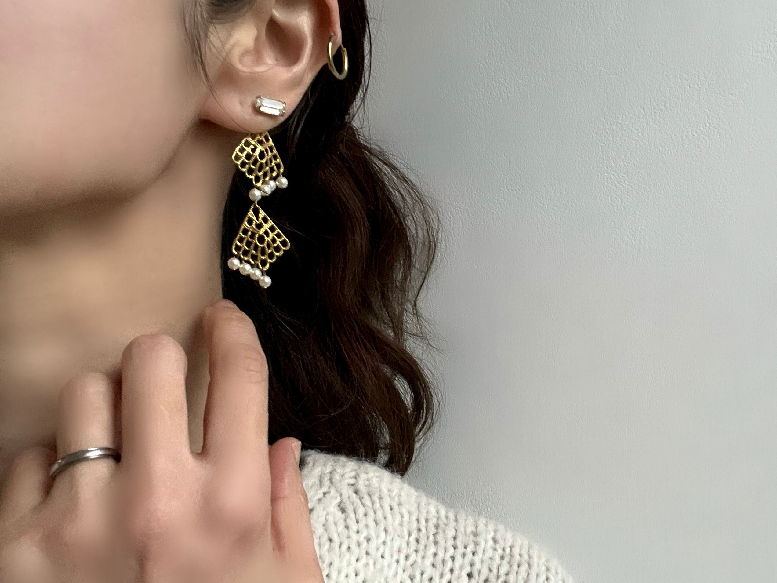 ヒラヒラと耳元で舞うような、繊細なレースが印象的です。
