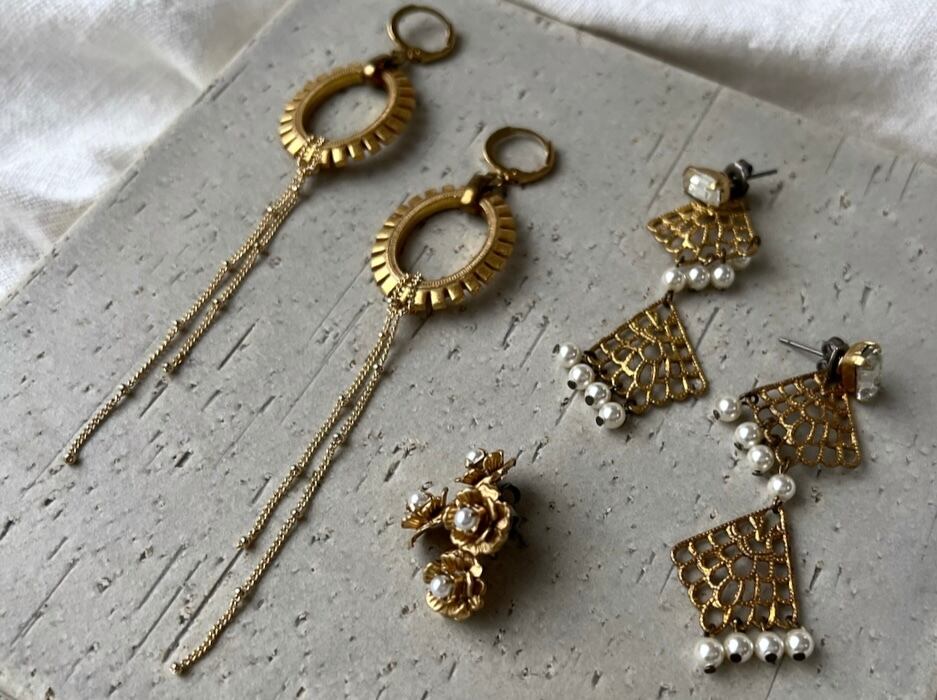 ヴィンテージパーツを使用してピアスを作りました。