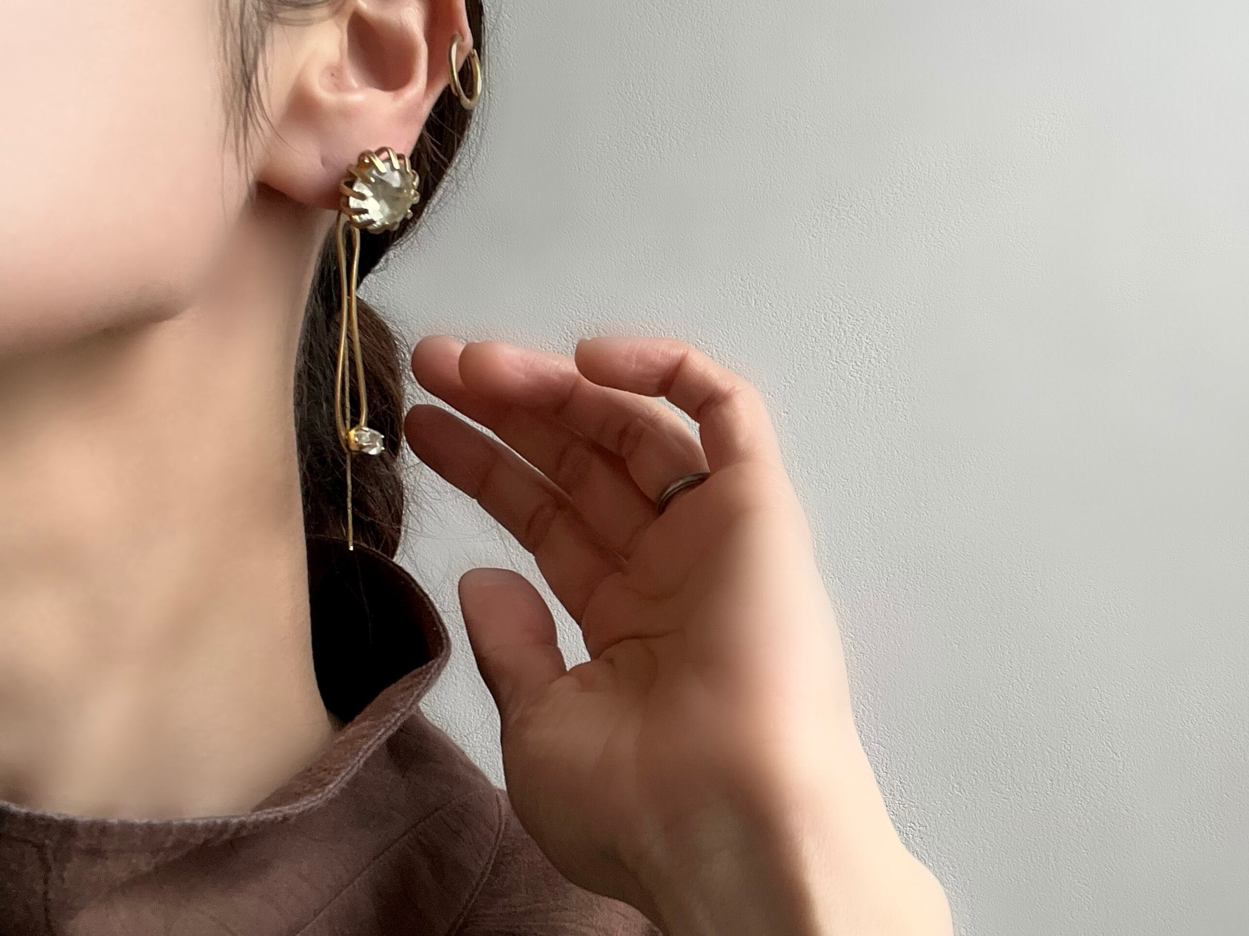 個性的な真鍮パーツにクリアガラスを合わせ、大人っぽくスッキリとまとめました。