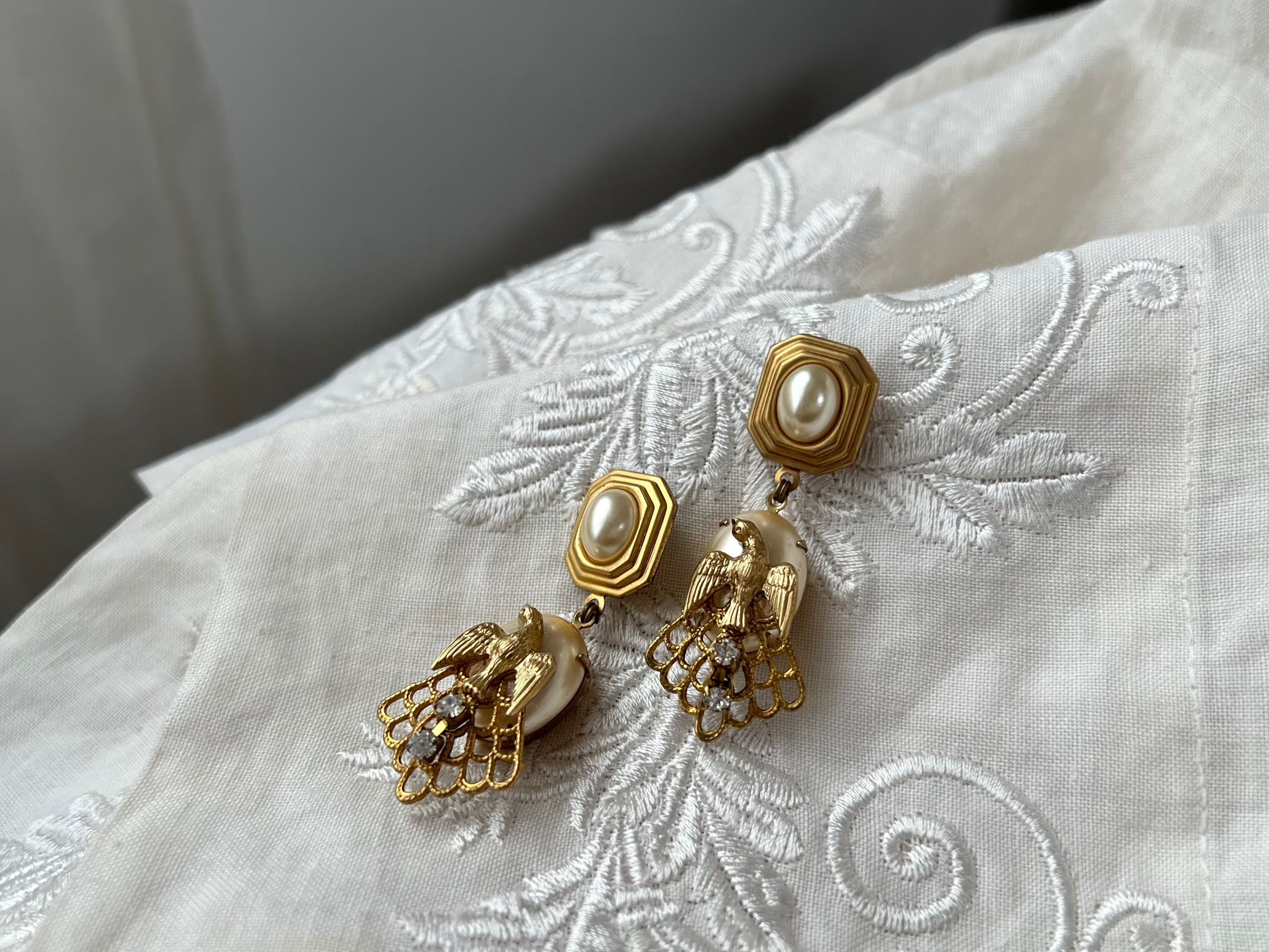 パールを2つ連ねて、そこにミリアムハスケルのレースやドープ、スワロフスキーを合わせてクラシカルに仕上げました。