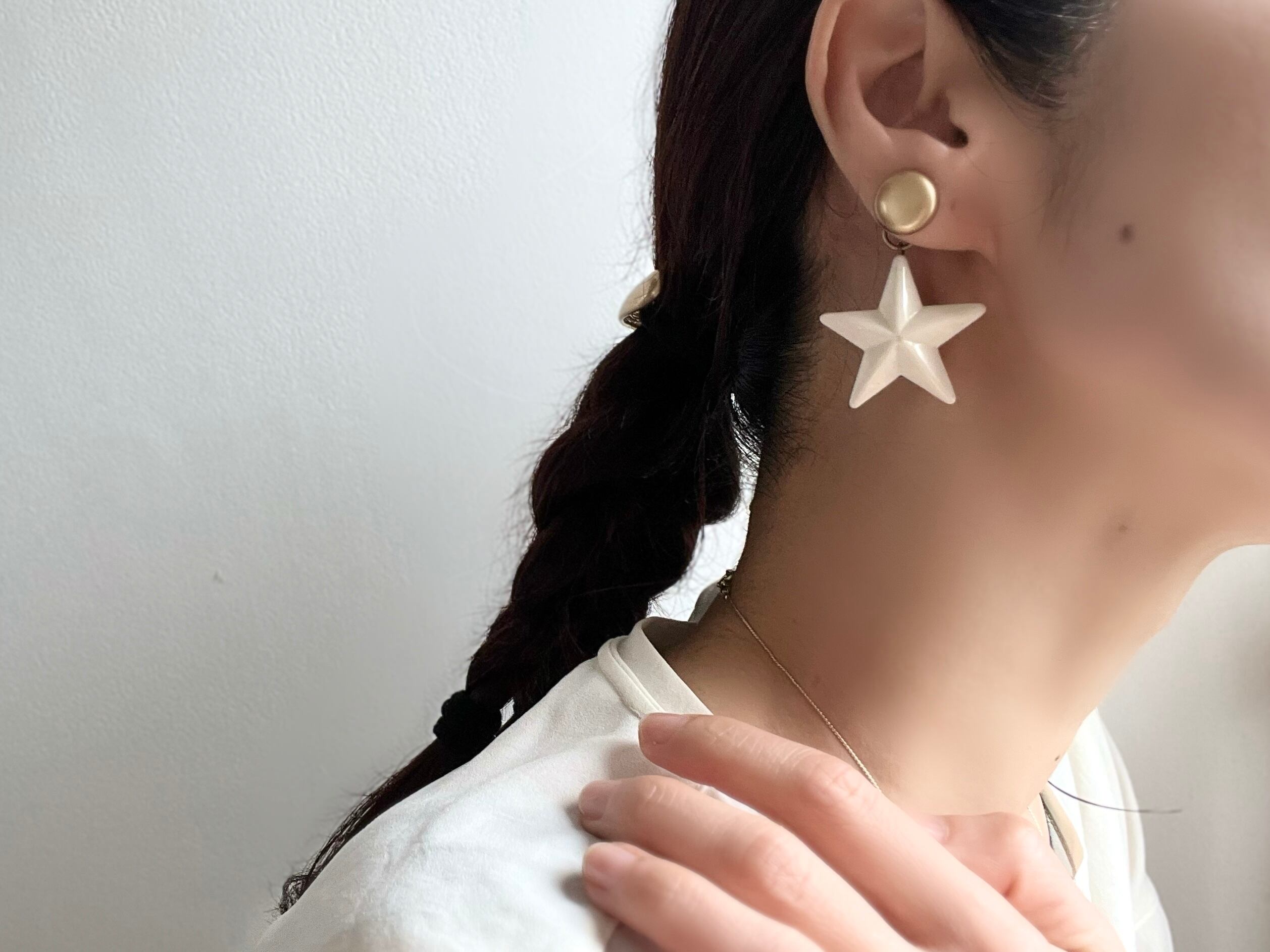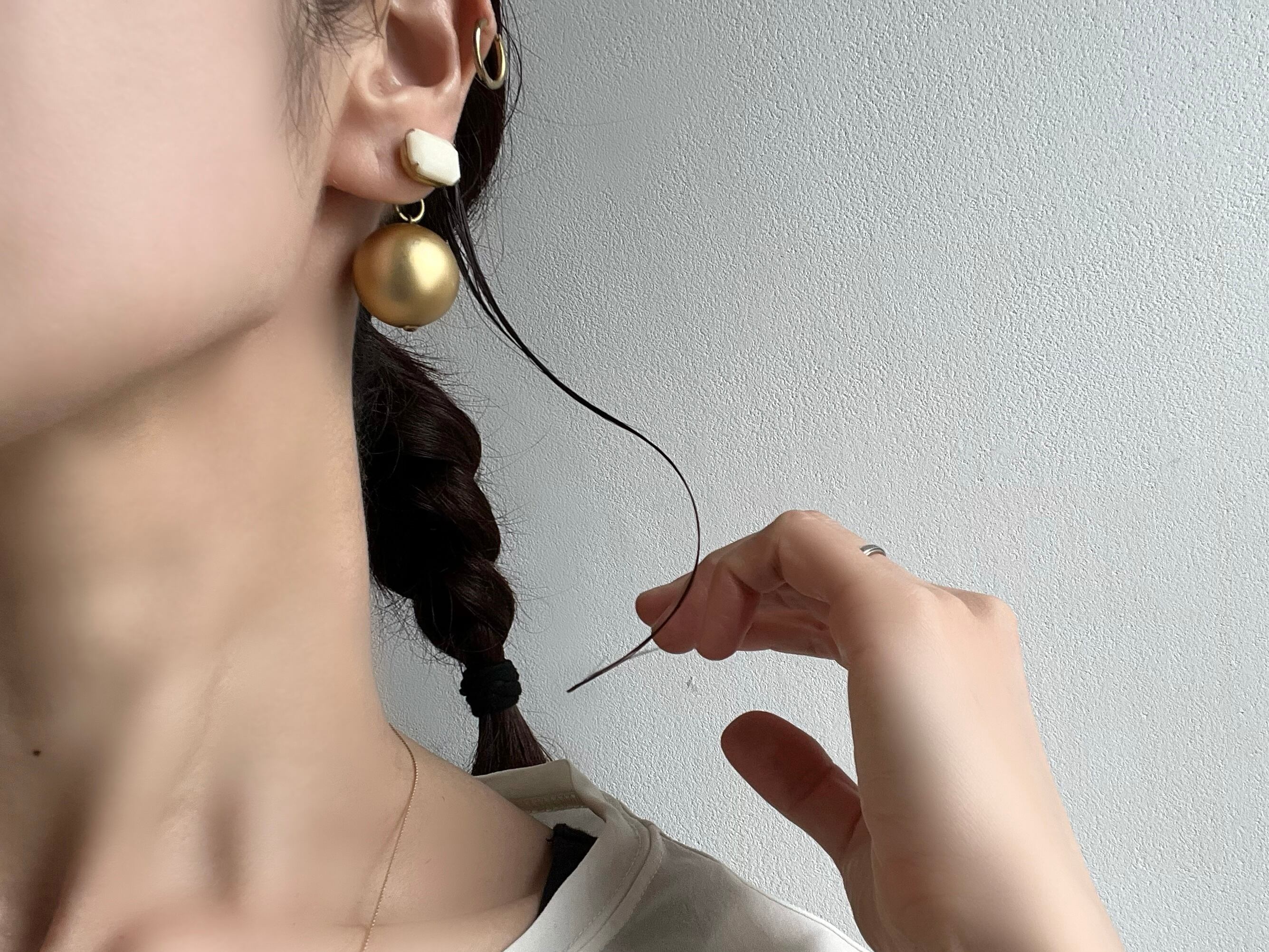 マットゴールドとアイボリーミルクの色合わせが肌馴染み良く、遊び心がありながらも大人っぽさを感じられるデザインです。