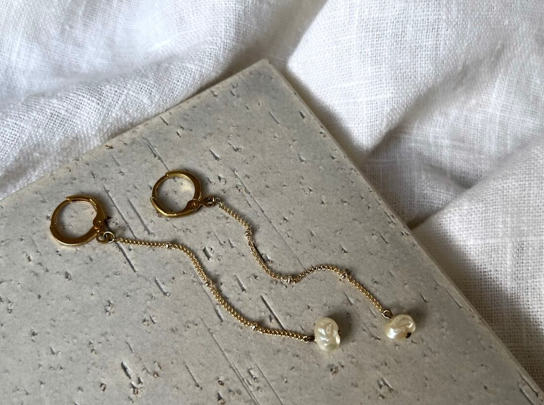 チェーンとパール、それぞれのデザインが繊細で、優しい印象を受けます。
