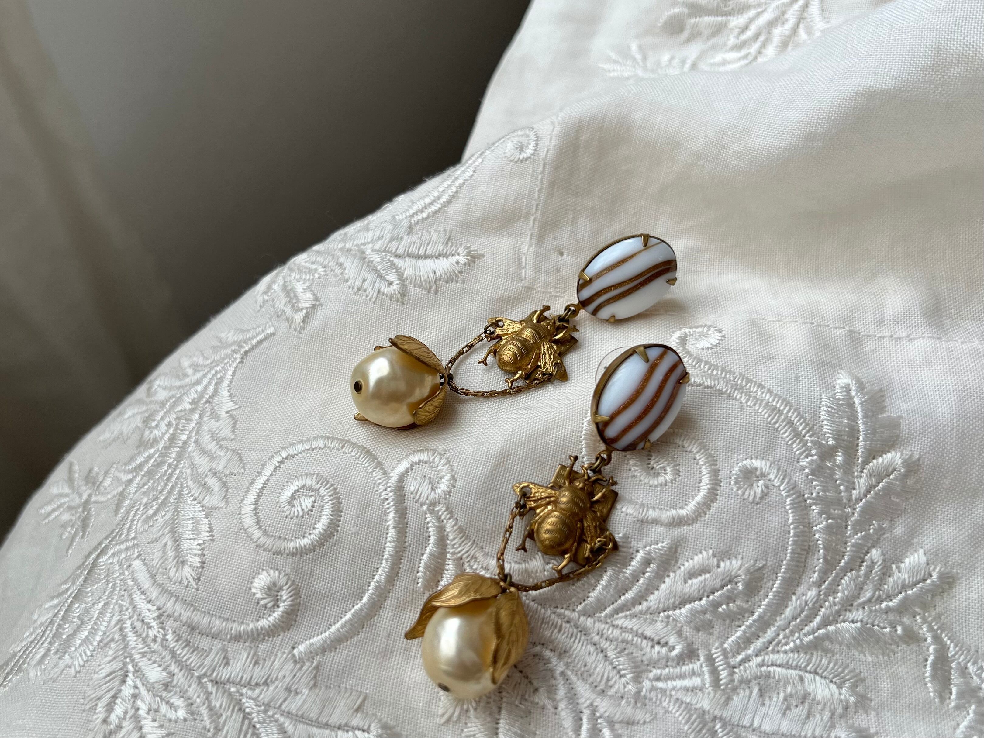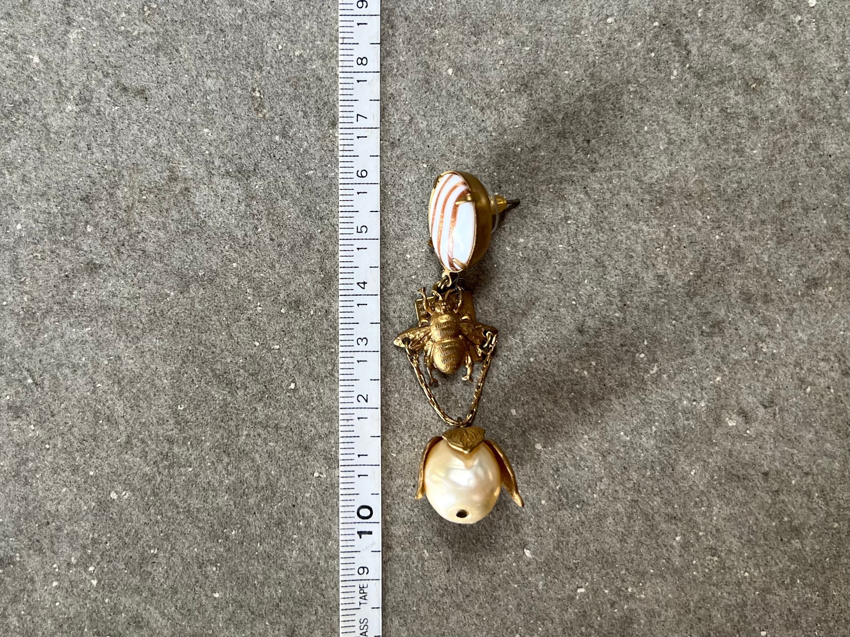 ミリアムハスケルのパールをカボションに個性的な昆虫パーツを合わせ、ガラスパールを吊るしました。