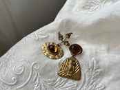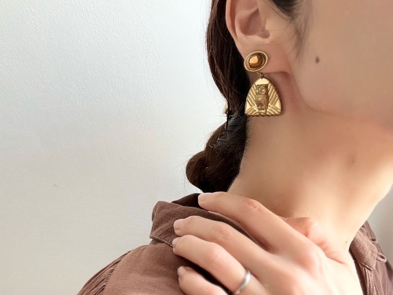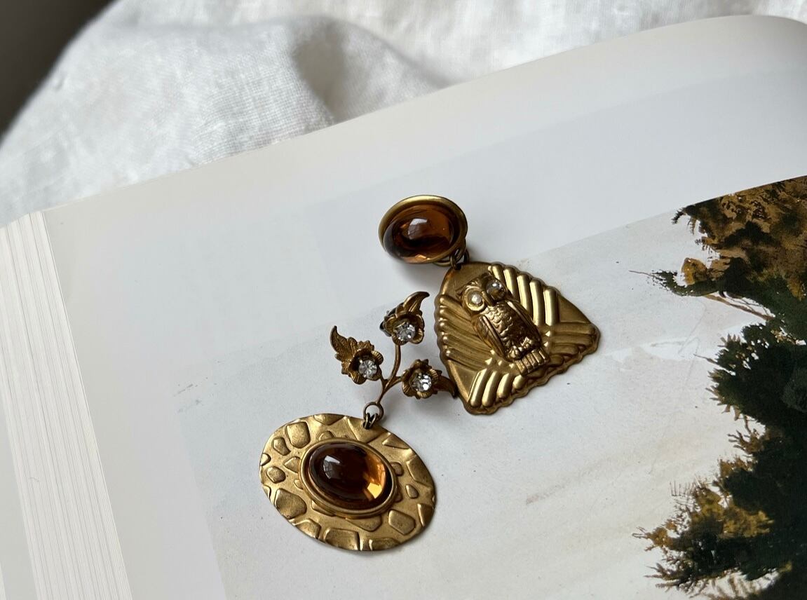 ヴィンテージパーツを使用してアシンメトリーなピアスを作りました。