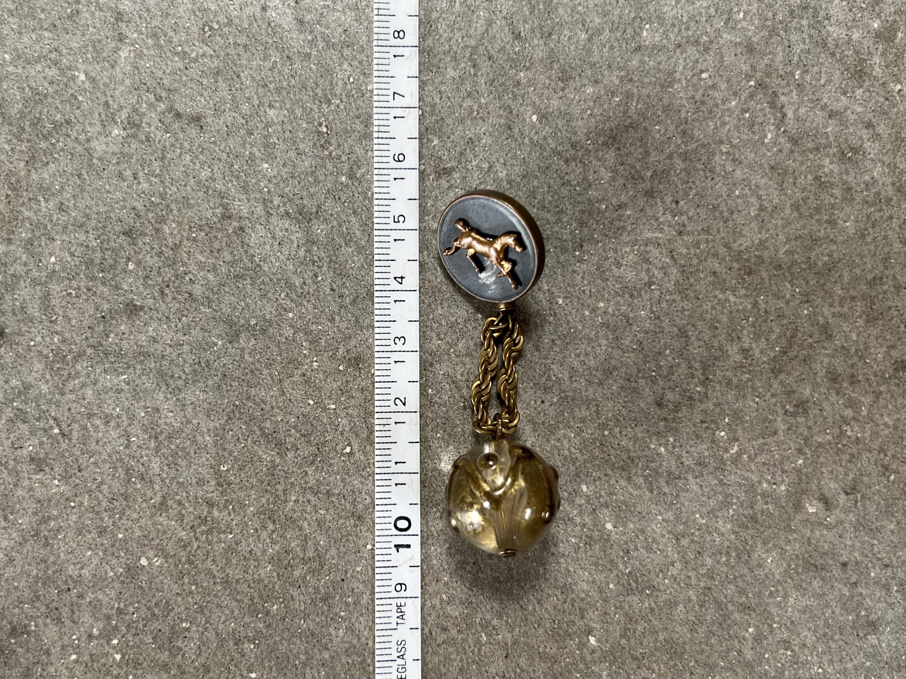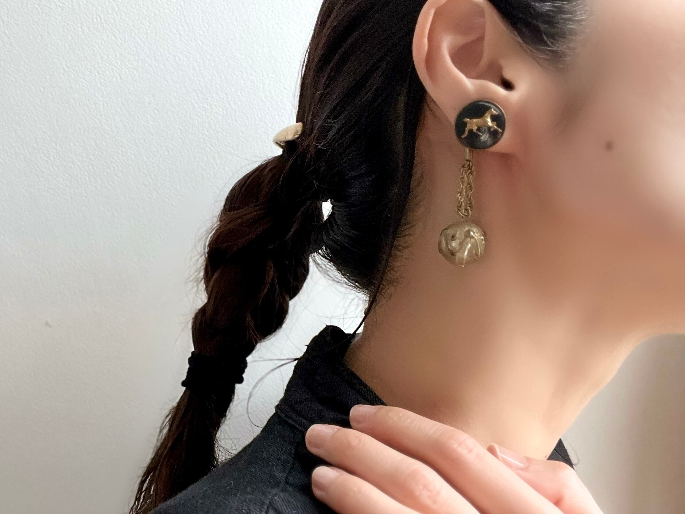 ホースチャームが施されたボタンをカボションに、デザイン性の高いボールをチェーンで繋いでいます。