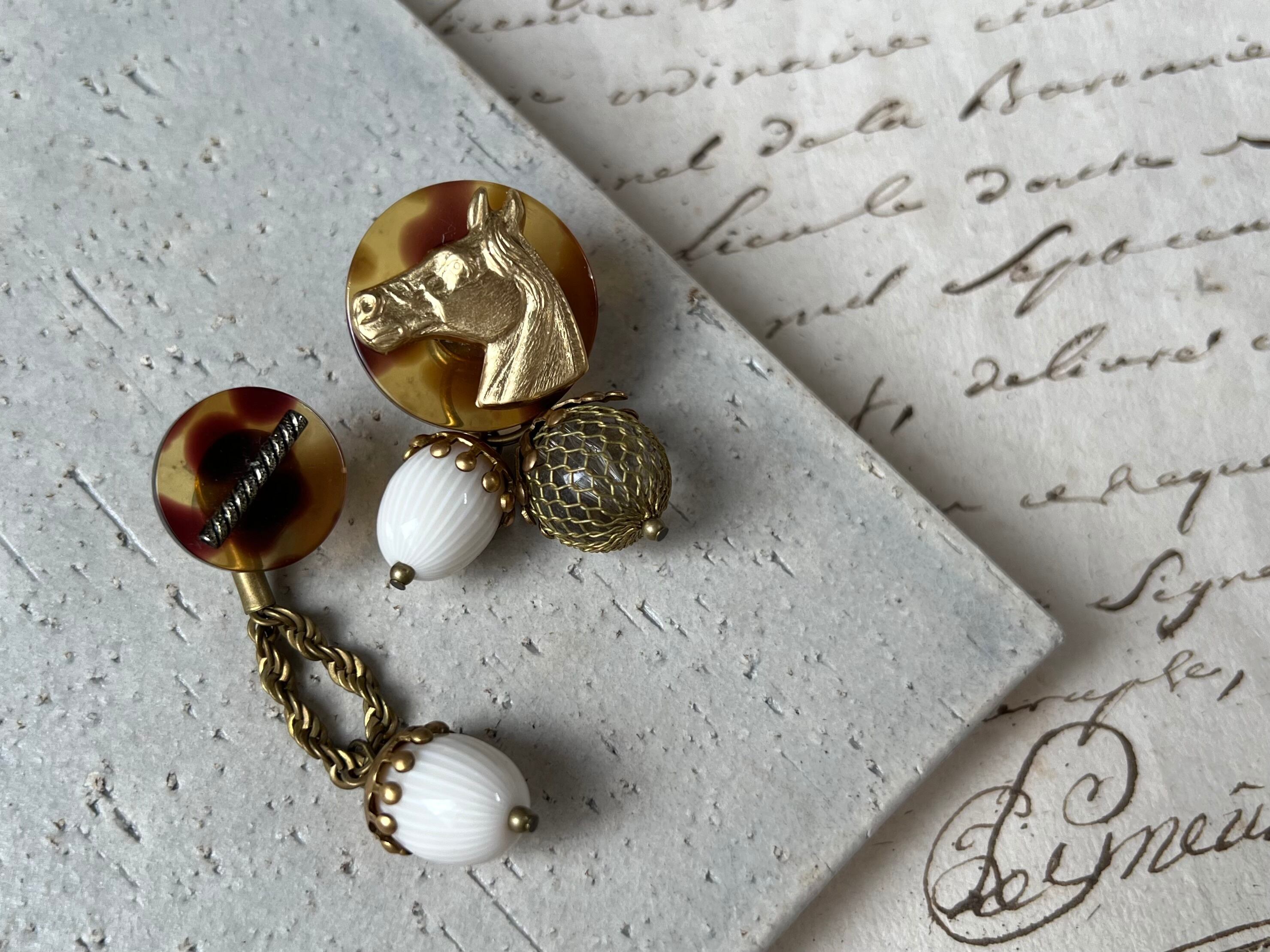 ホースヘッドチャームやミリアムハスケルのビーズキャップ、ロープチェーンなどクラシカルな要素を取り入れて、個性的でありながらもとても上品な雰囲気です。