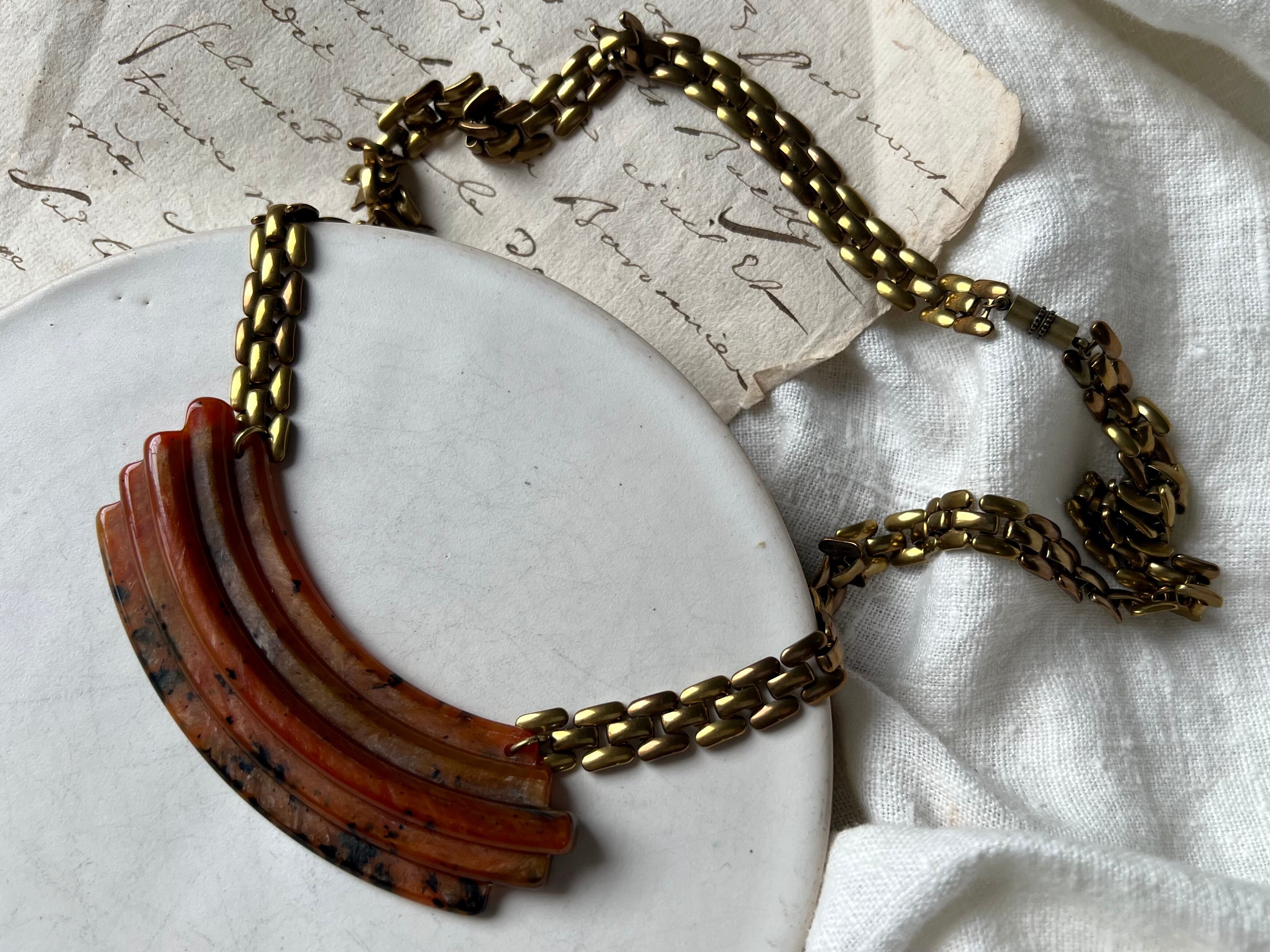 個性的なドイツ製のルーサイトパーツをメインに、少し太めのチェーンをやや長めに取って合わせています。