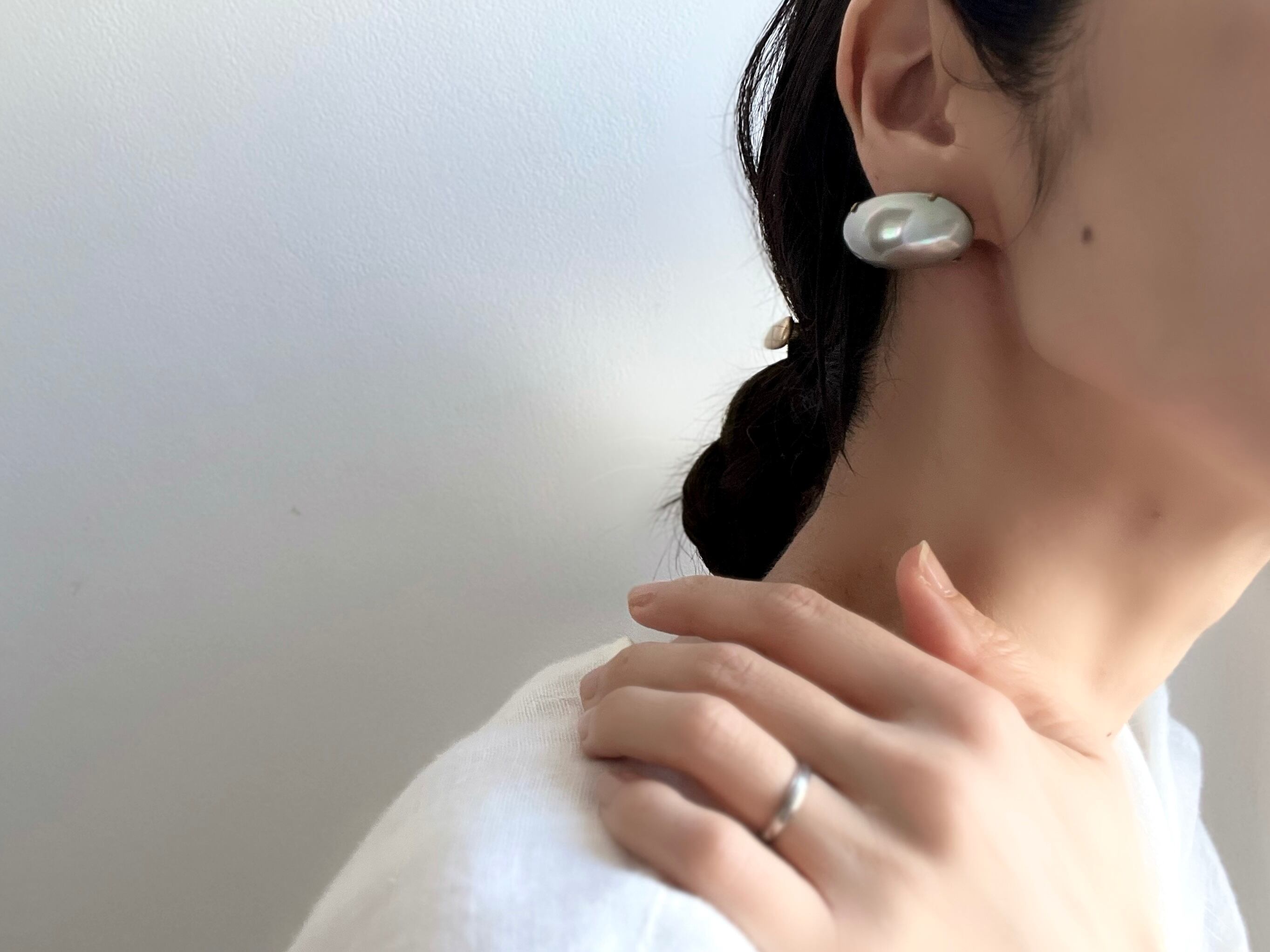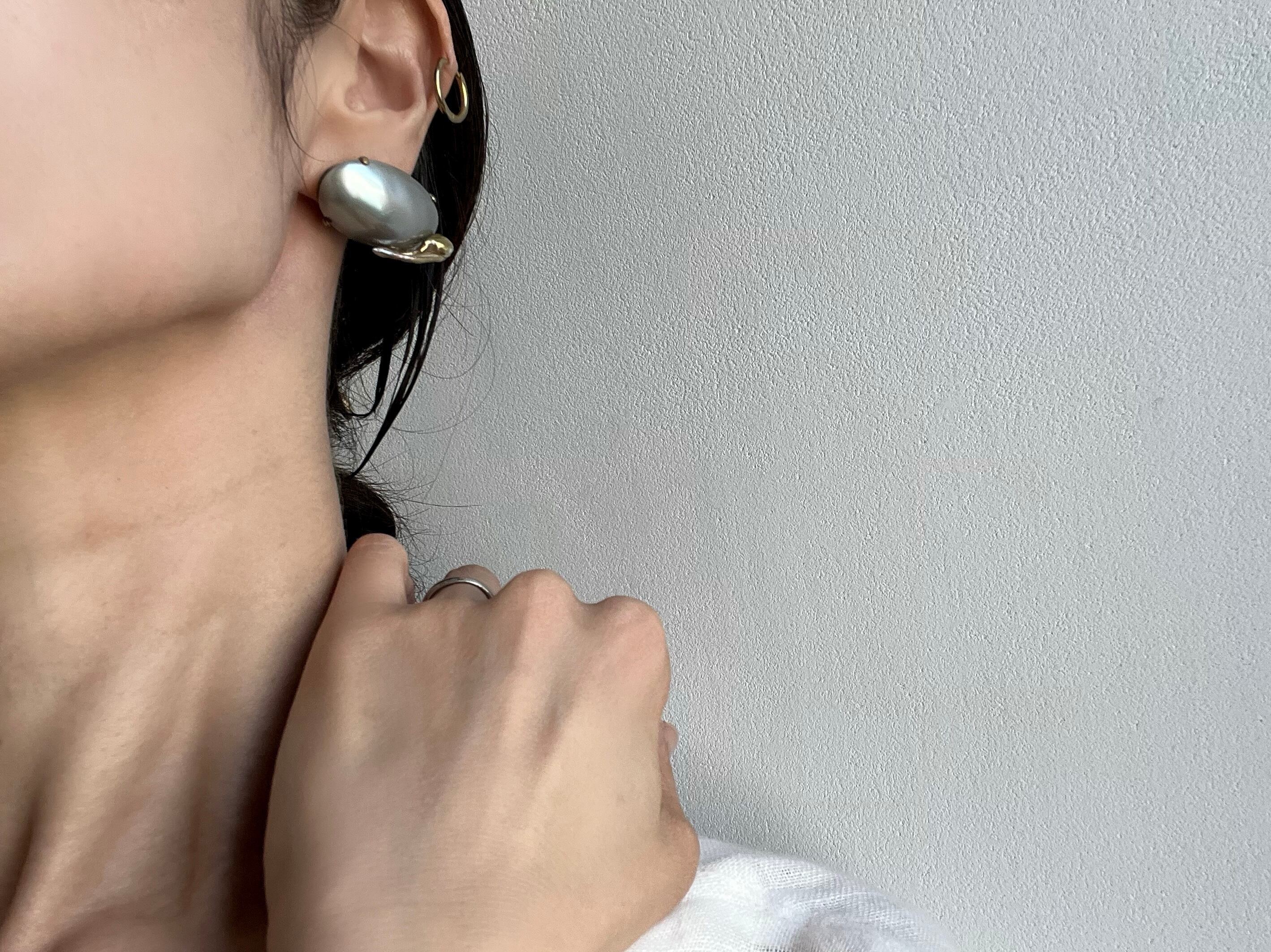シルバーグレーのパールカボションに淡水パールを片耳分添えて、リズムを付けました。
