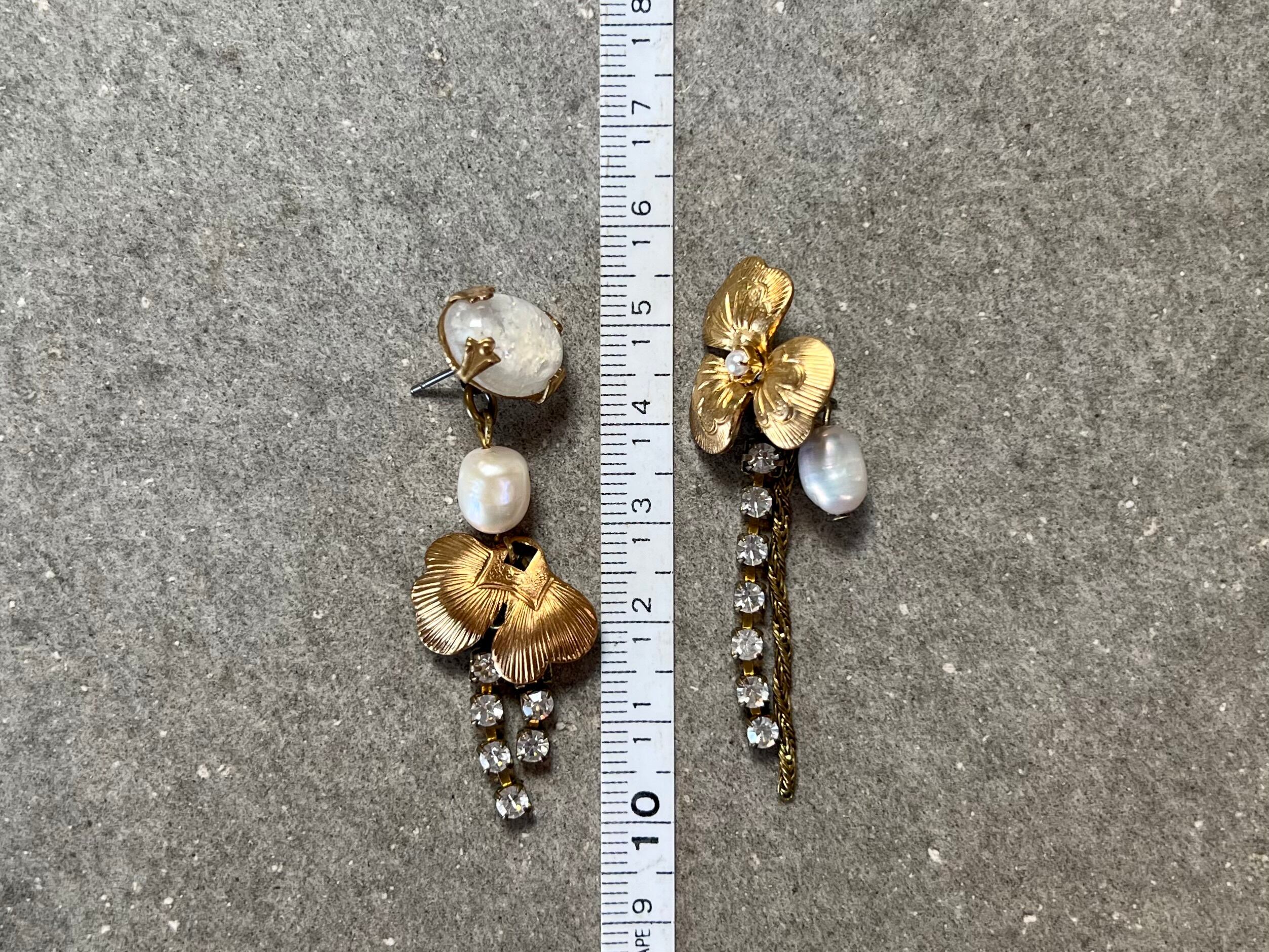 ヴィンテージパーツを使用してアシンメトリーなピアスを作りました。