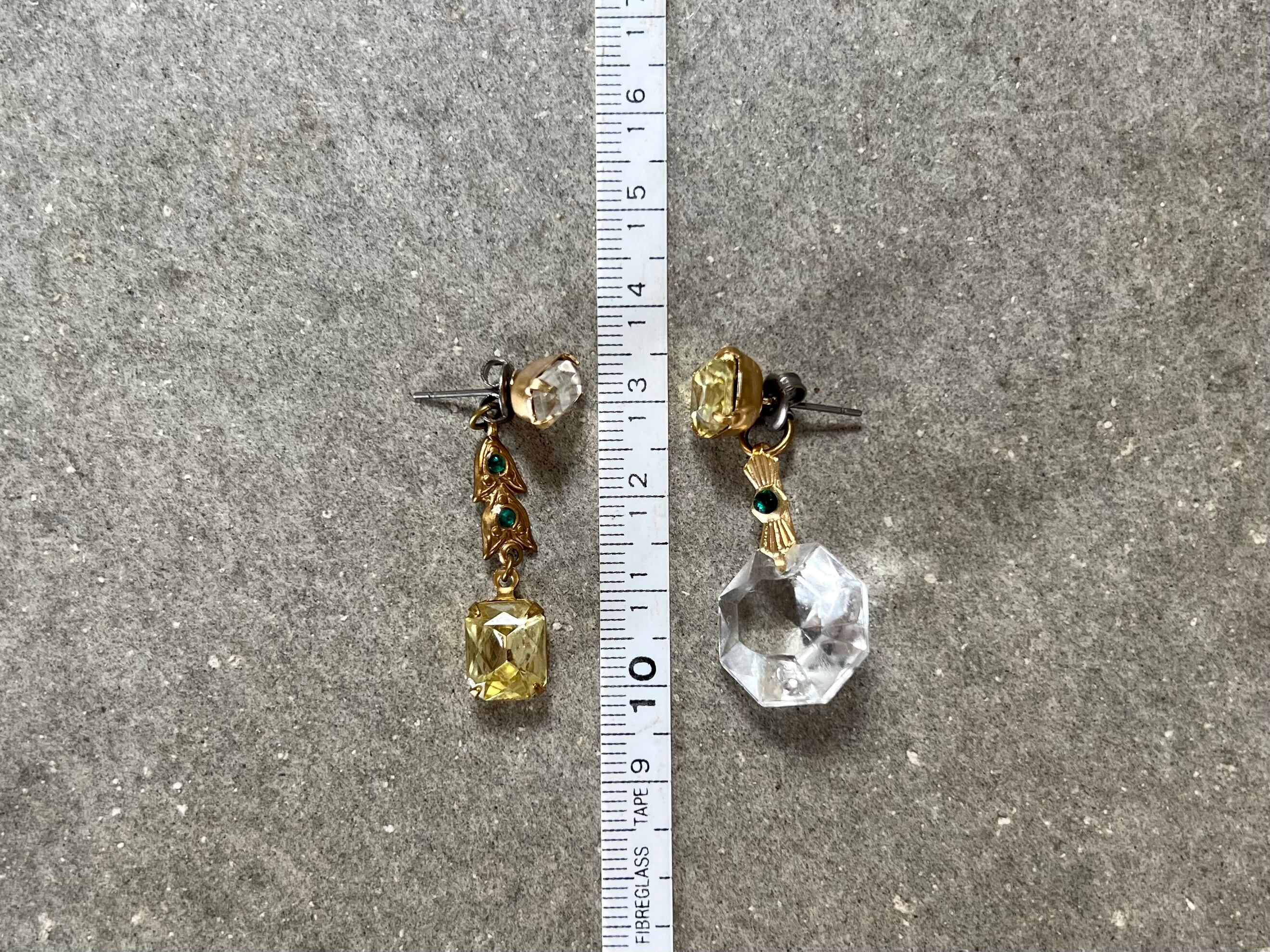 ヴィンテージパーツを使用してアシンメトリーなピアスを作りました。