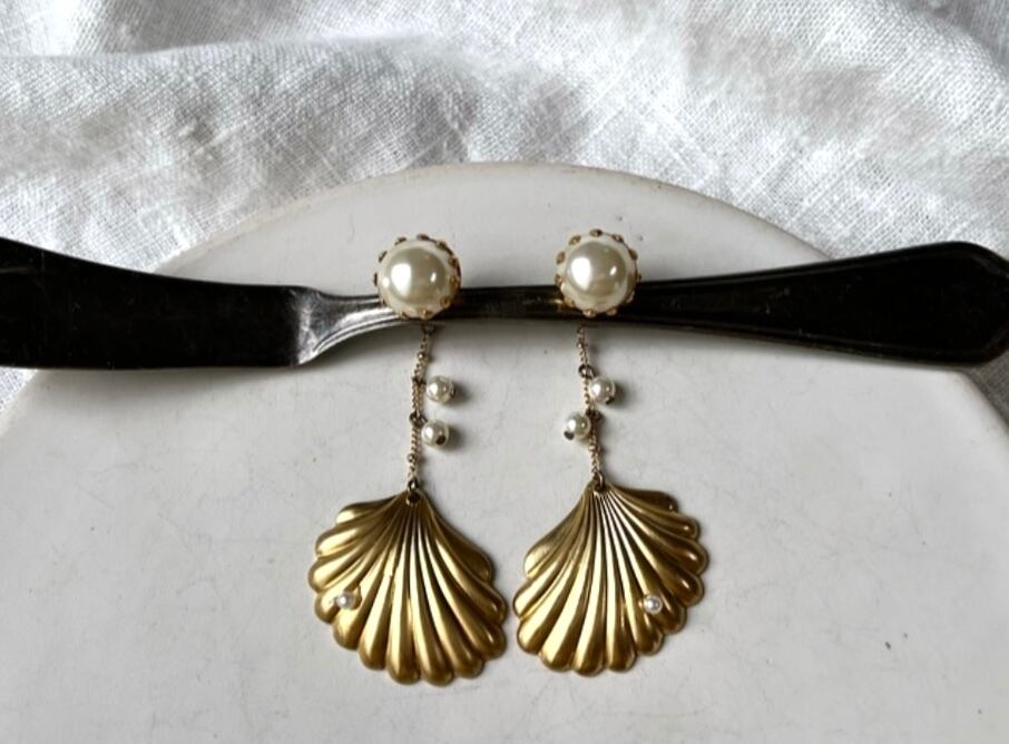 パールとシェルパーツで構成された、今の季節にピッタリのデザインです。