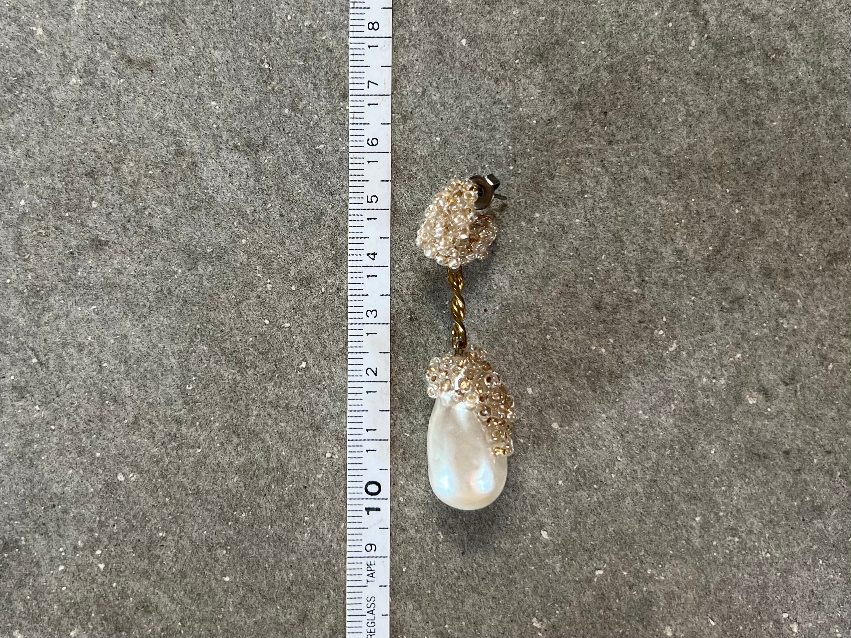 重厚感のあるミリアムハスケルのドロップパールを主役にシードビーズで飾り付けをし、シンプルなデザインながらも華やかに仕上げています。